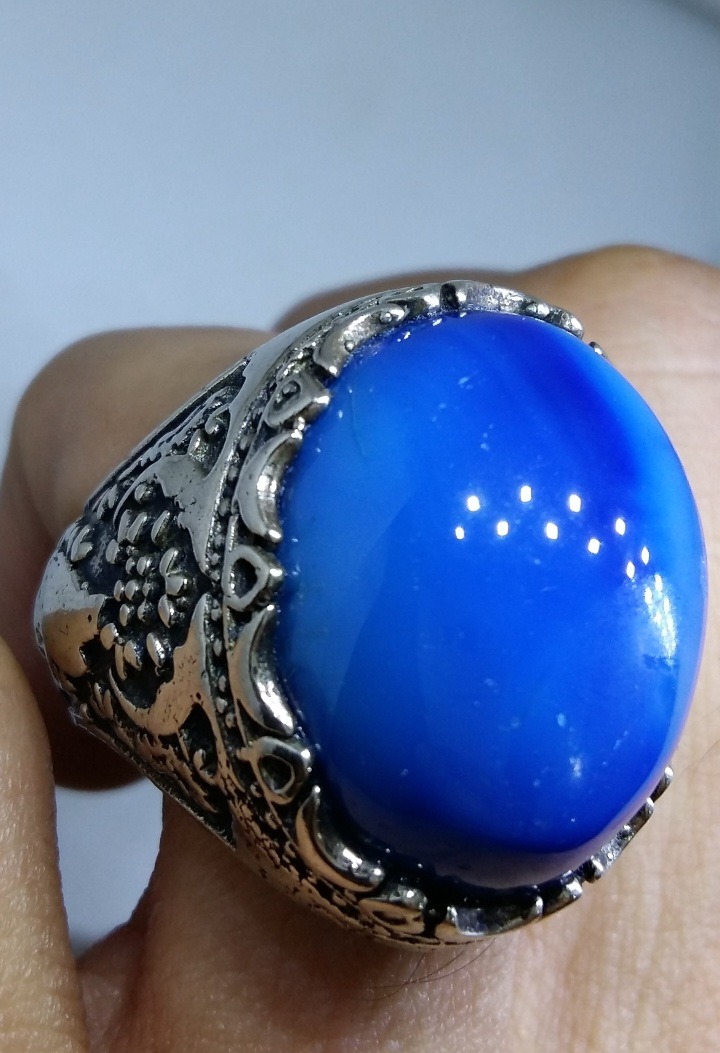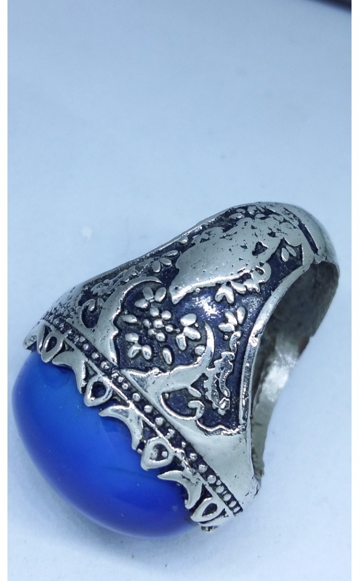 انگشترطرح قلمزنی فاخر عقیق آبی کلوخه برزیلی معدنی