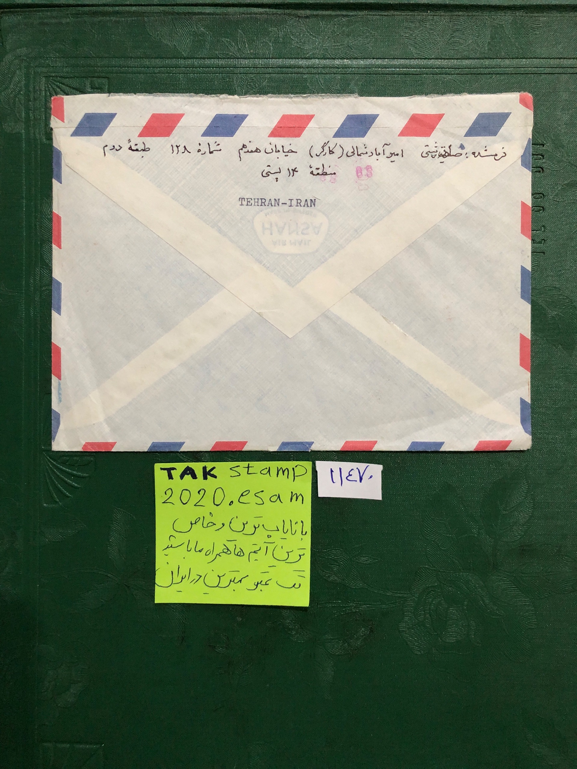 پاکت مصرفی از تهران به امریکا 1359 رشتی