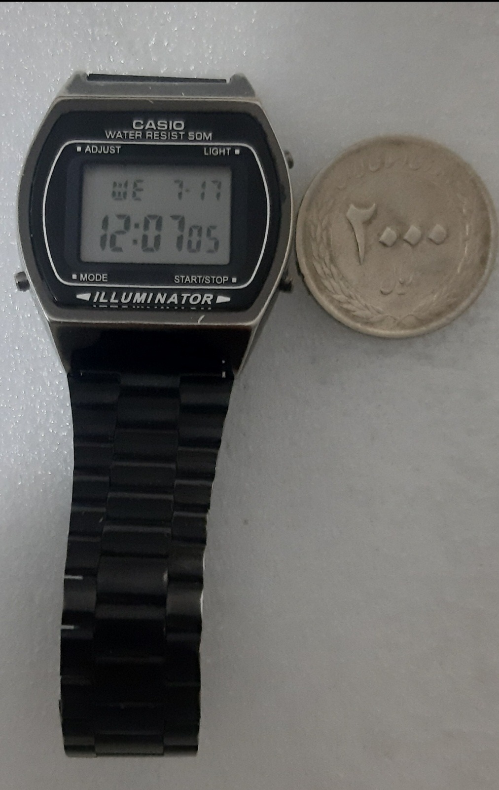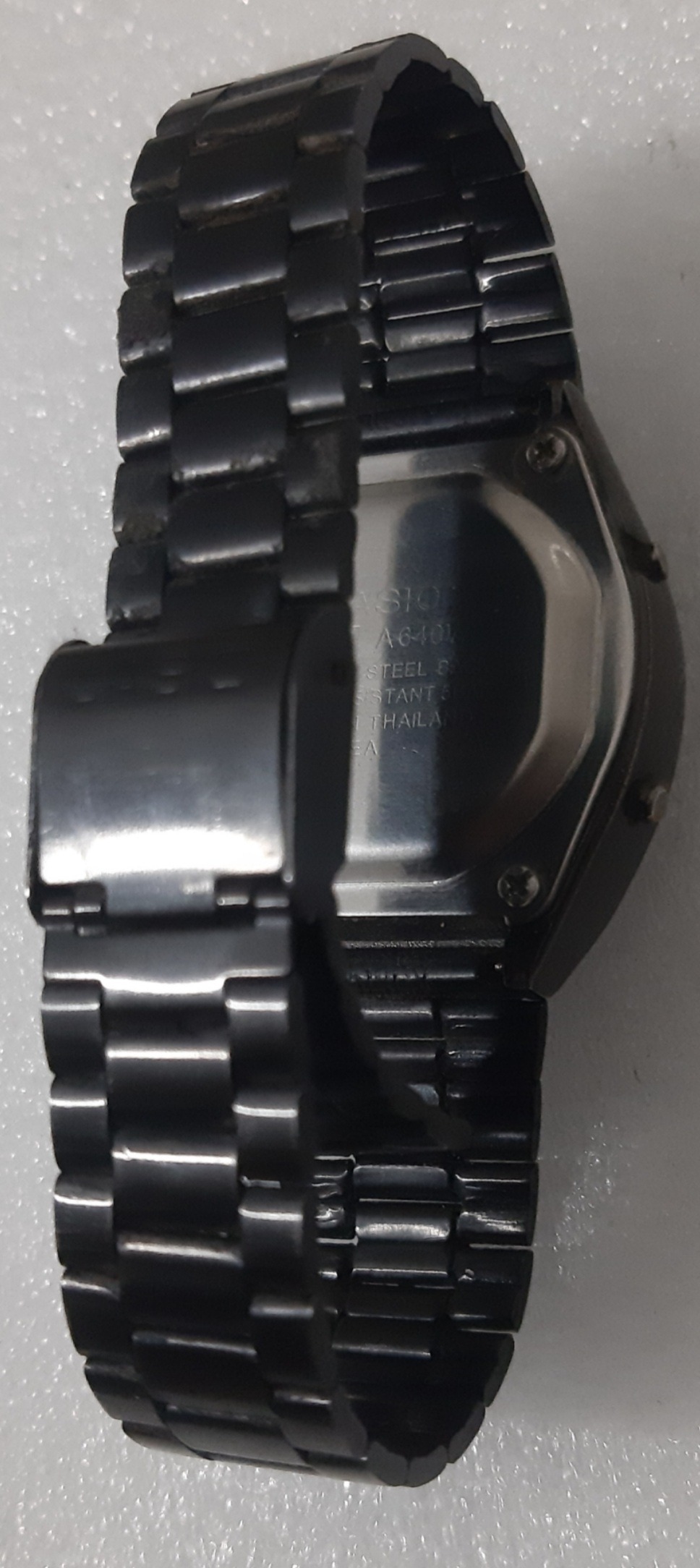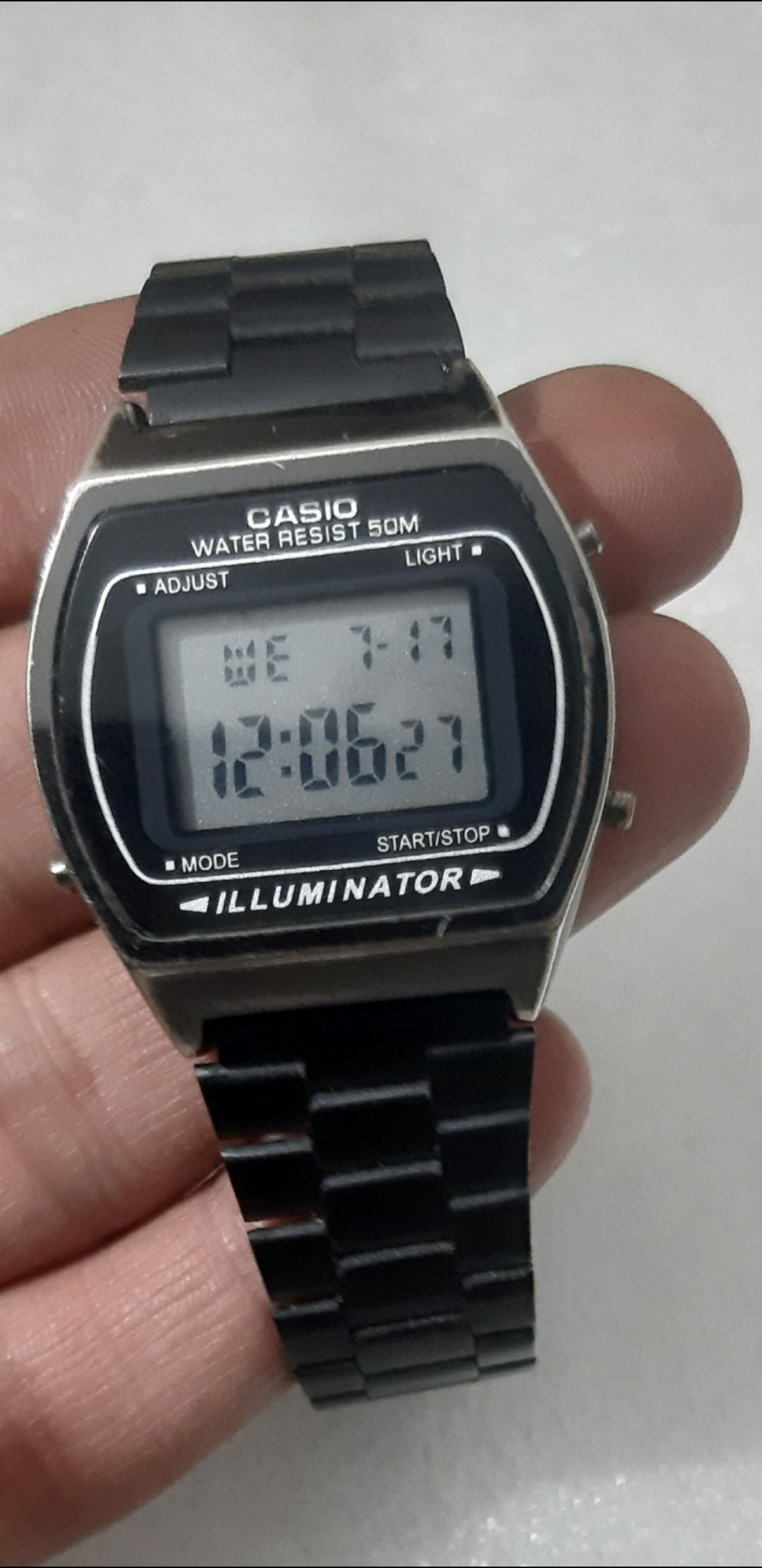 کاسیو دیجیتال تمام فلز قاب بسیار بادوام یکدست رنگ مشکی و خوش فرم با امکانات زنگ کرونومتر الارم بیداری و... ساخت تایلند مدل خاص 4کلید کمیاب
