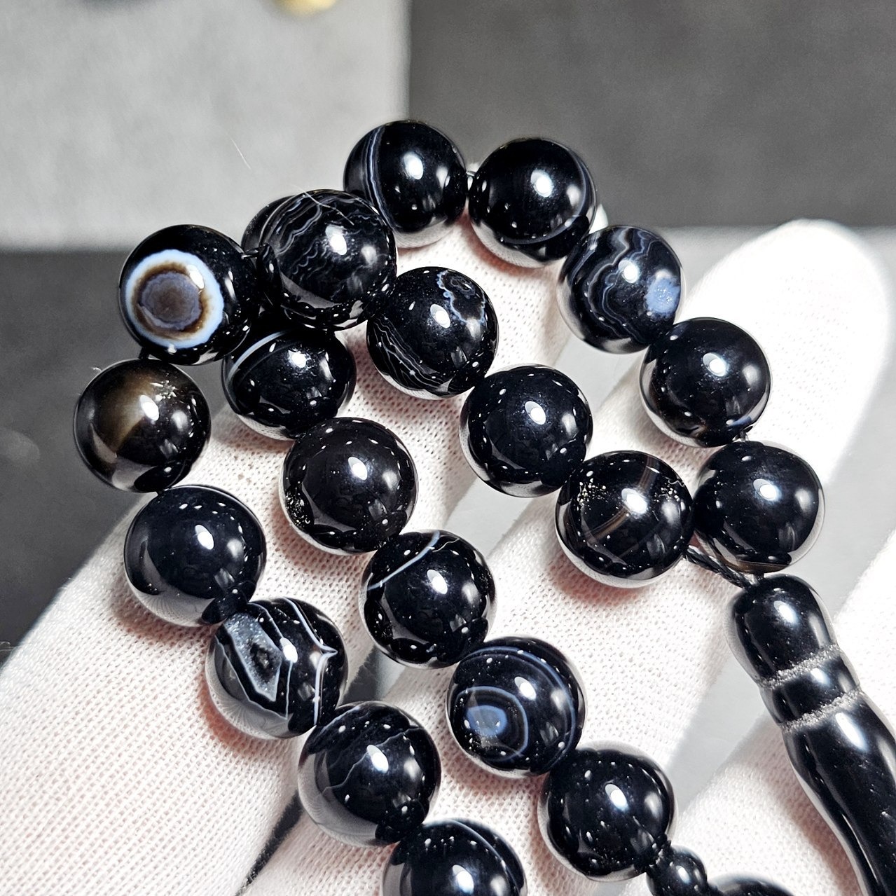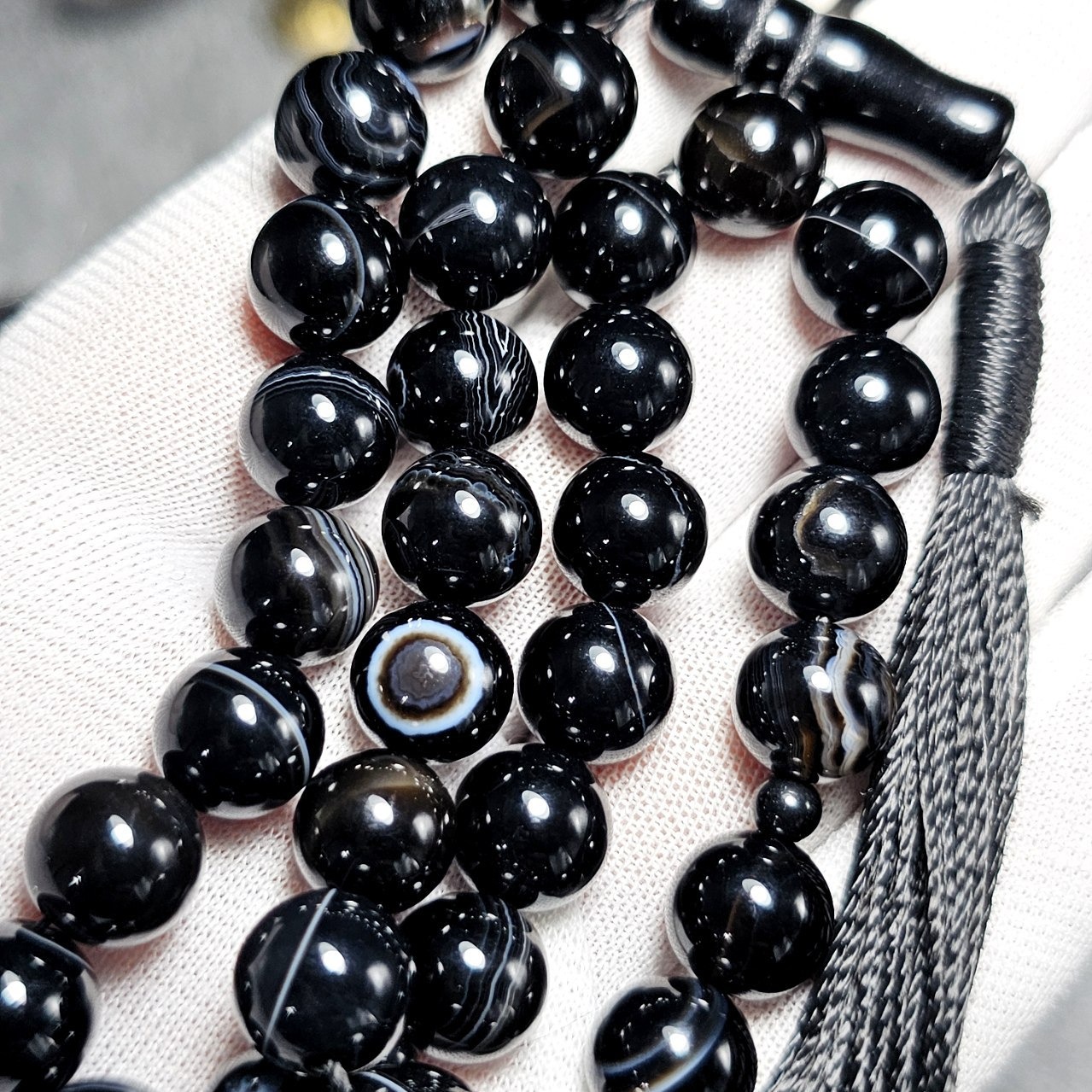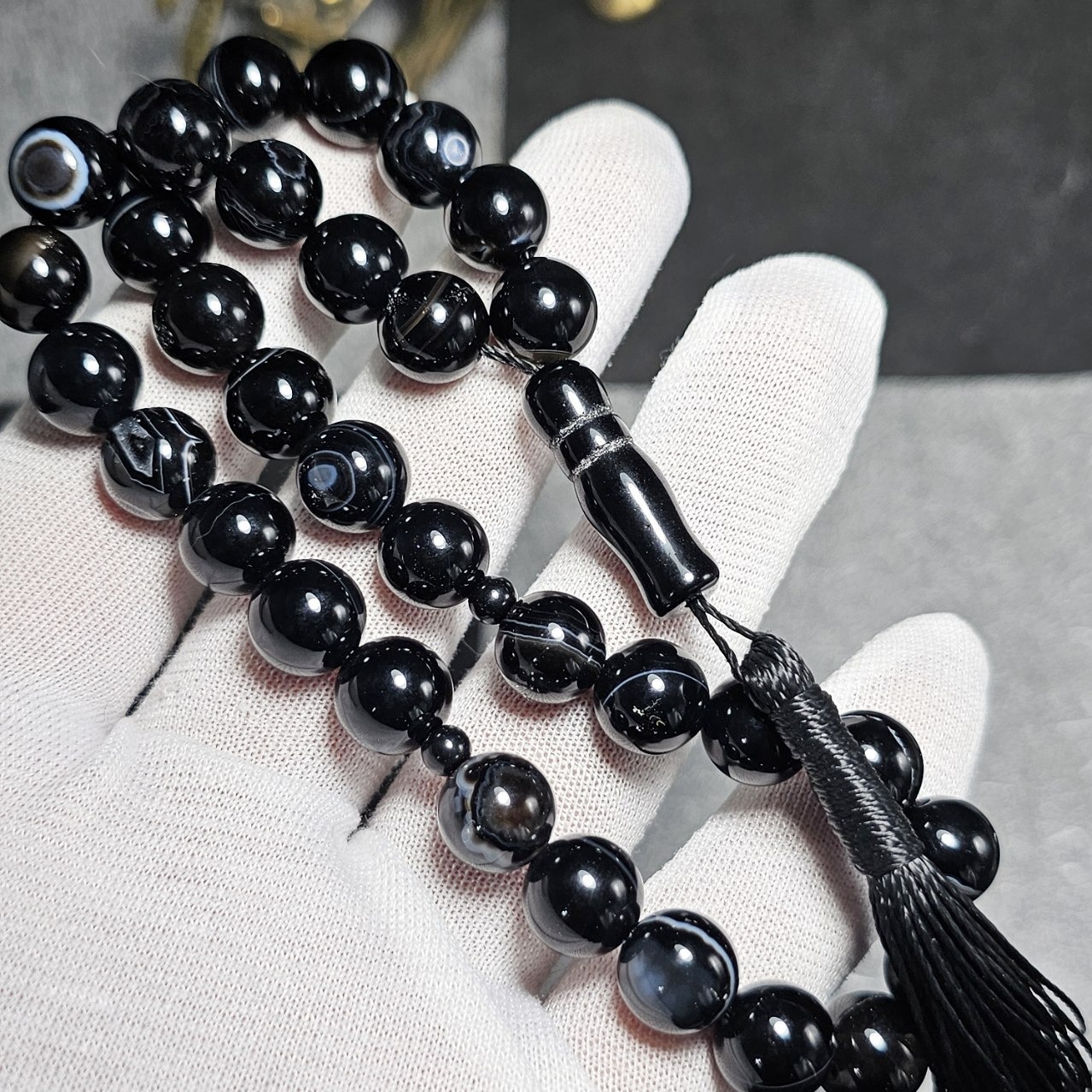 تسبیح 33 دانه عقیق سیاه باباقوری معدنی 36351