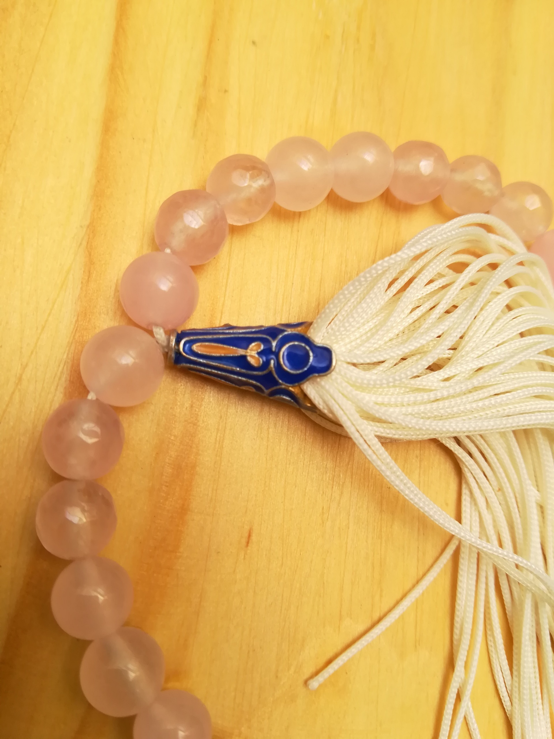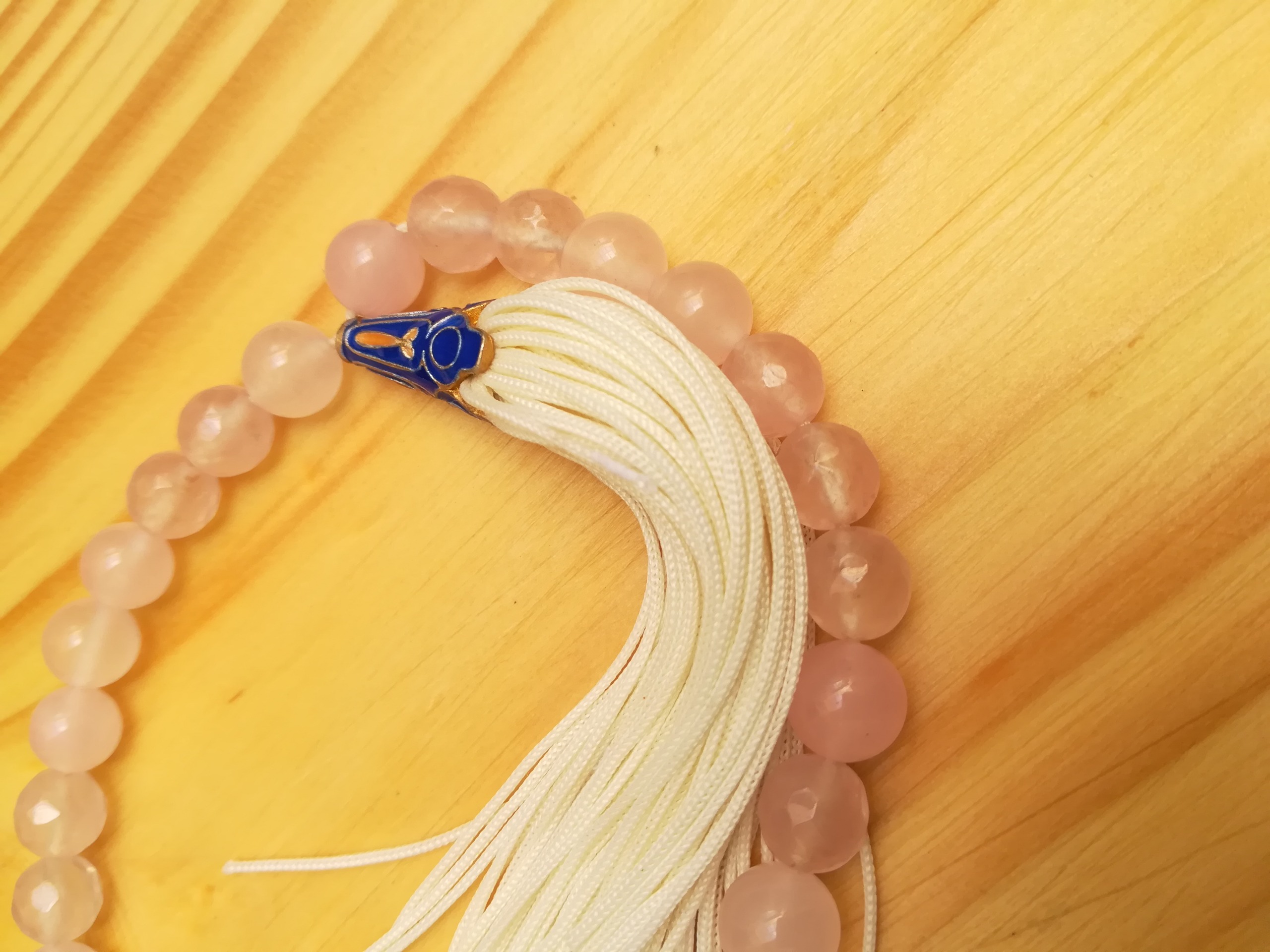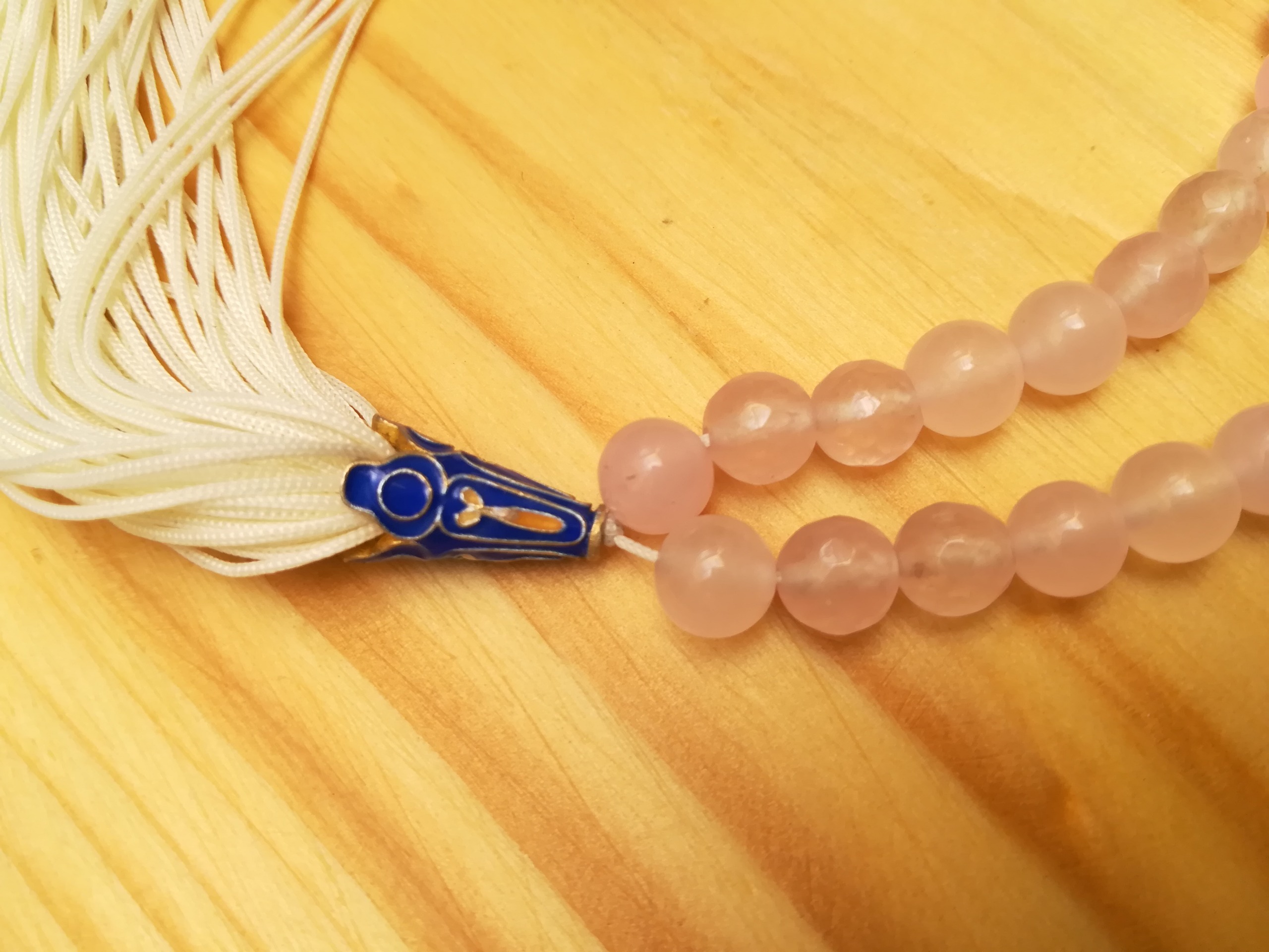 تسبیح رز کوارتز مزین به شیخک نقره925 میناکاری