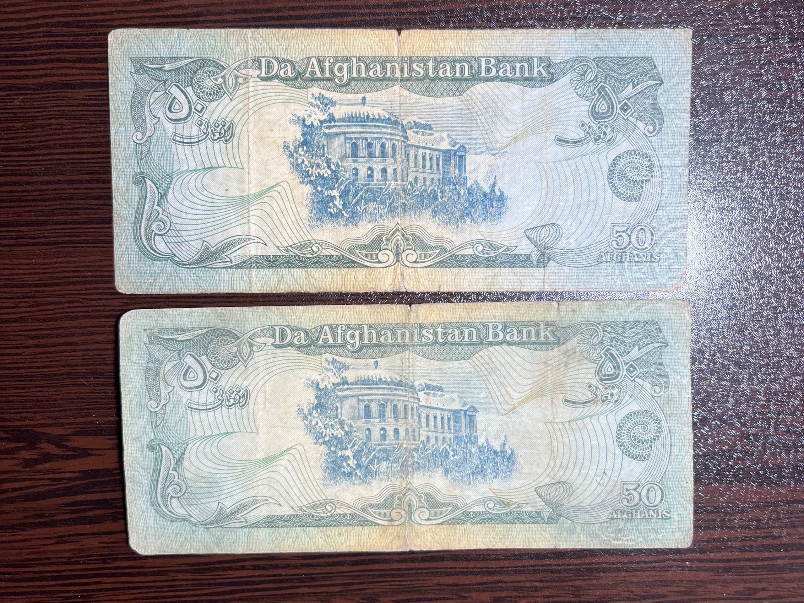دو تک اسکناس 50 افغانی قدیمی افغانستان