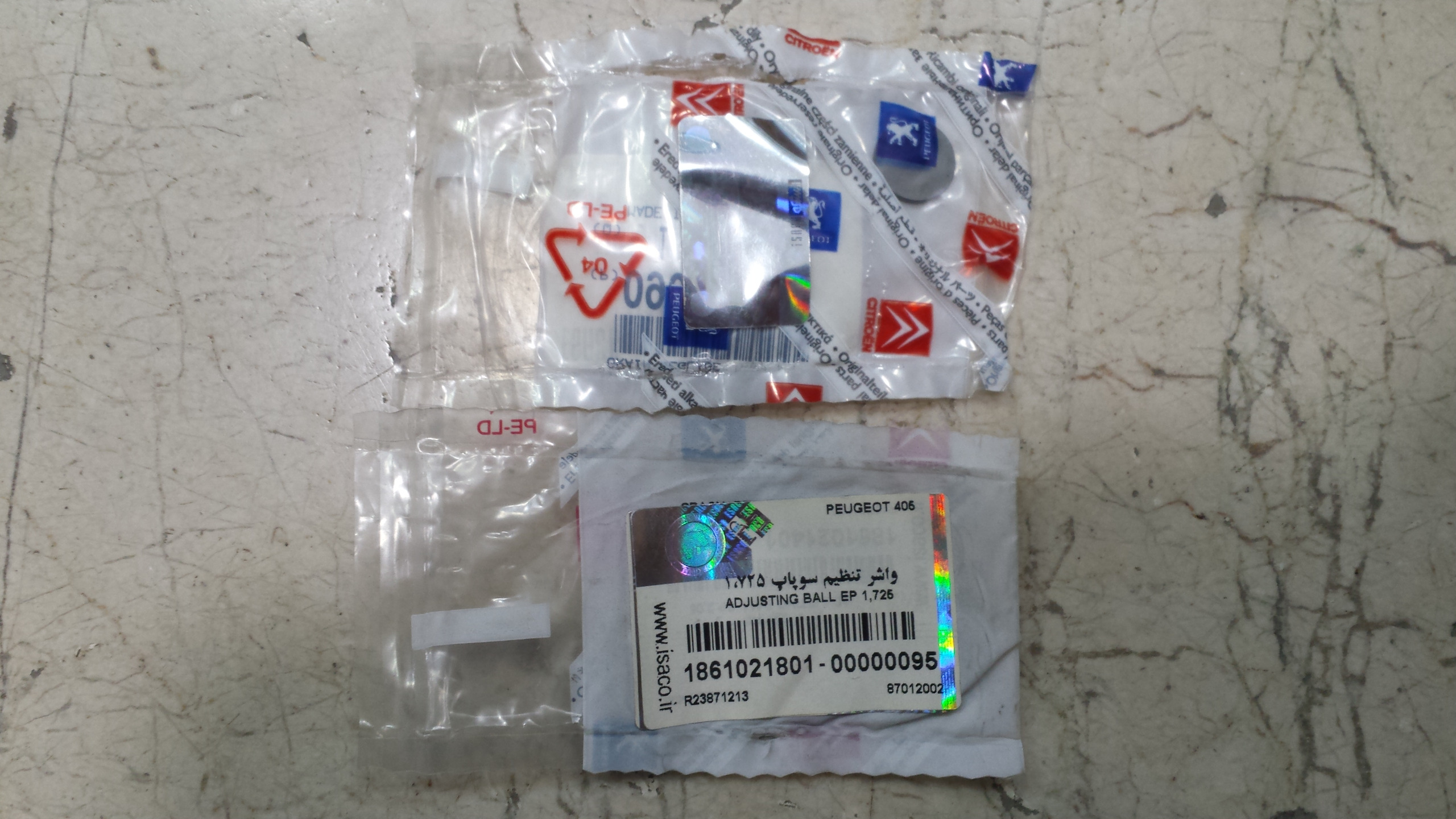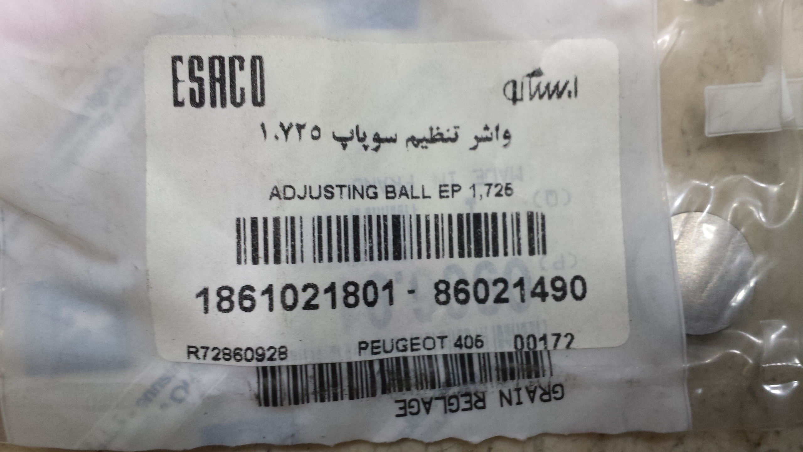 یک عدد شیم تنظیم سوپاپ سرسیلندر پژو 405 اورجینال فرانسه با لیبل ایساکو - اندازه 1/725 - قیمت برای یک عدد میباشد