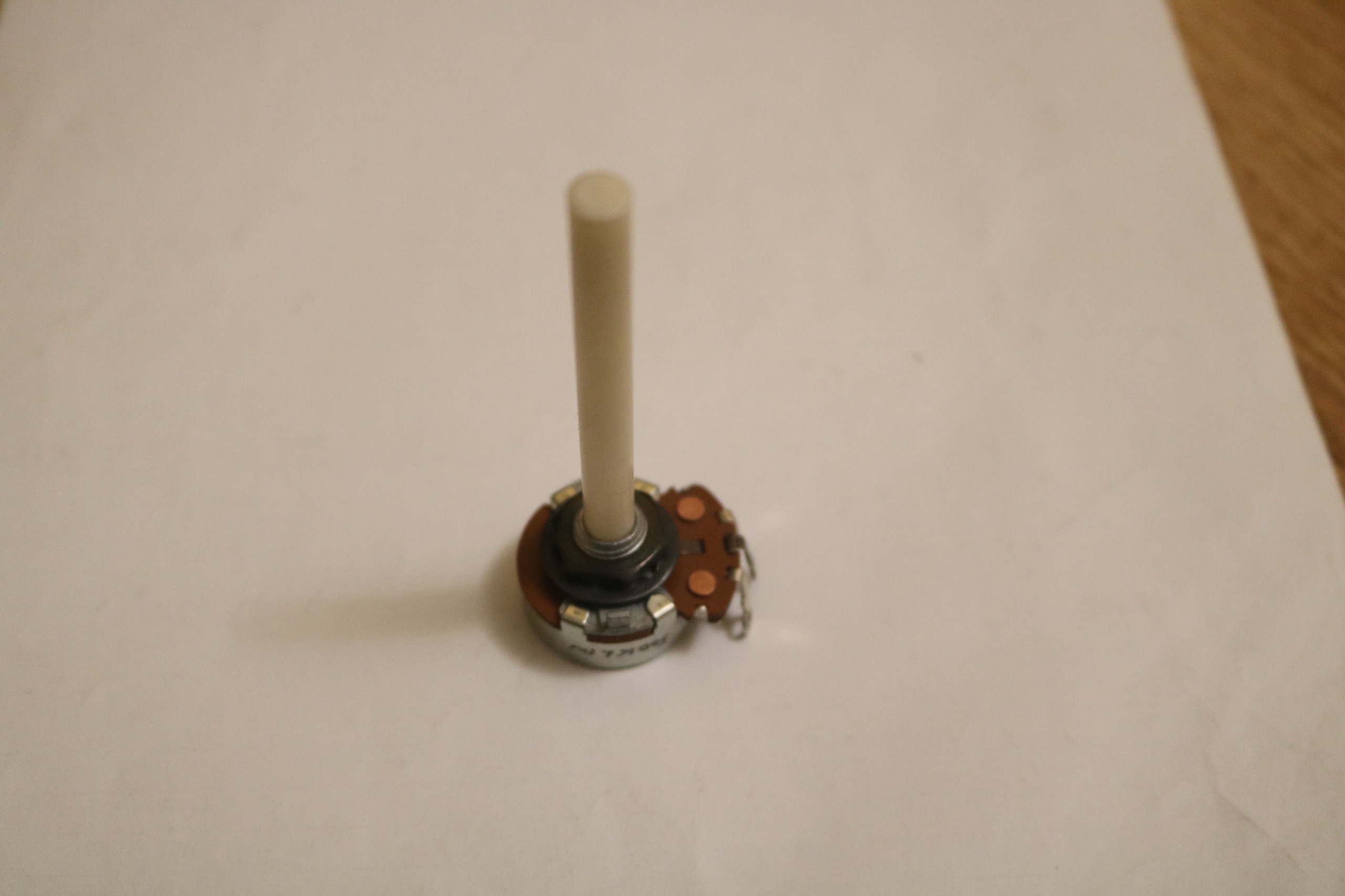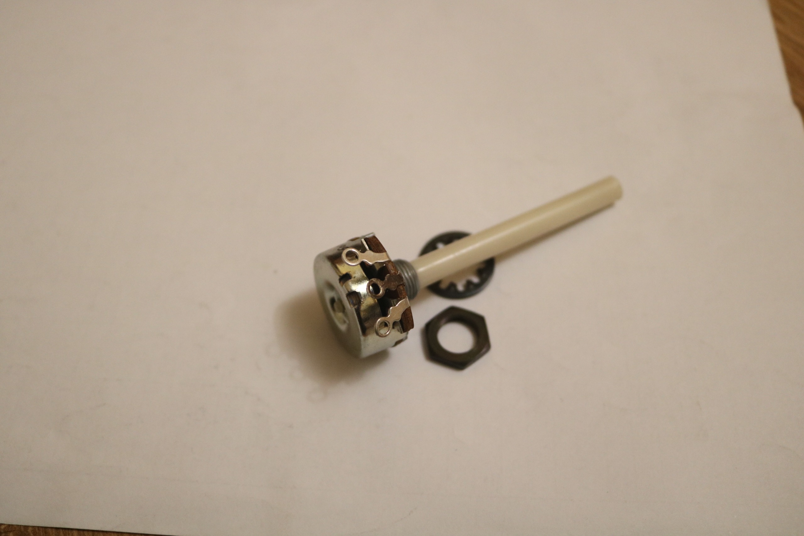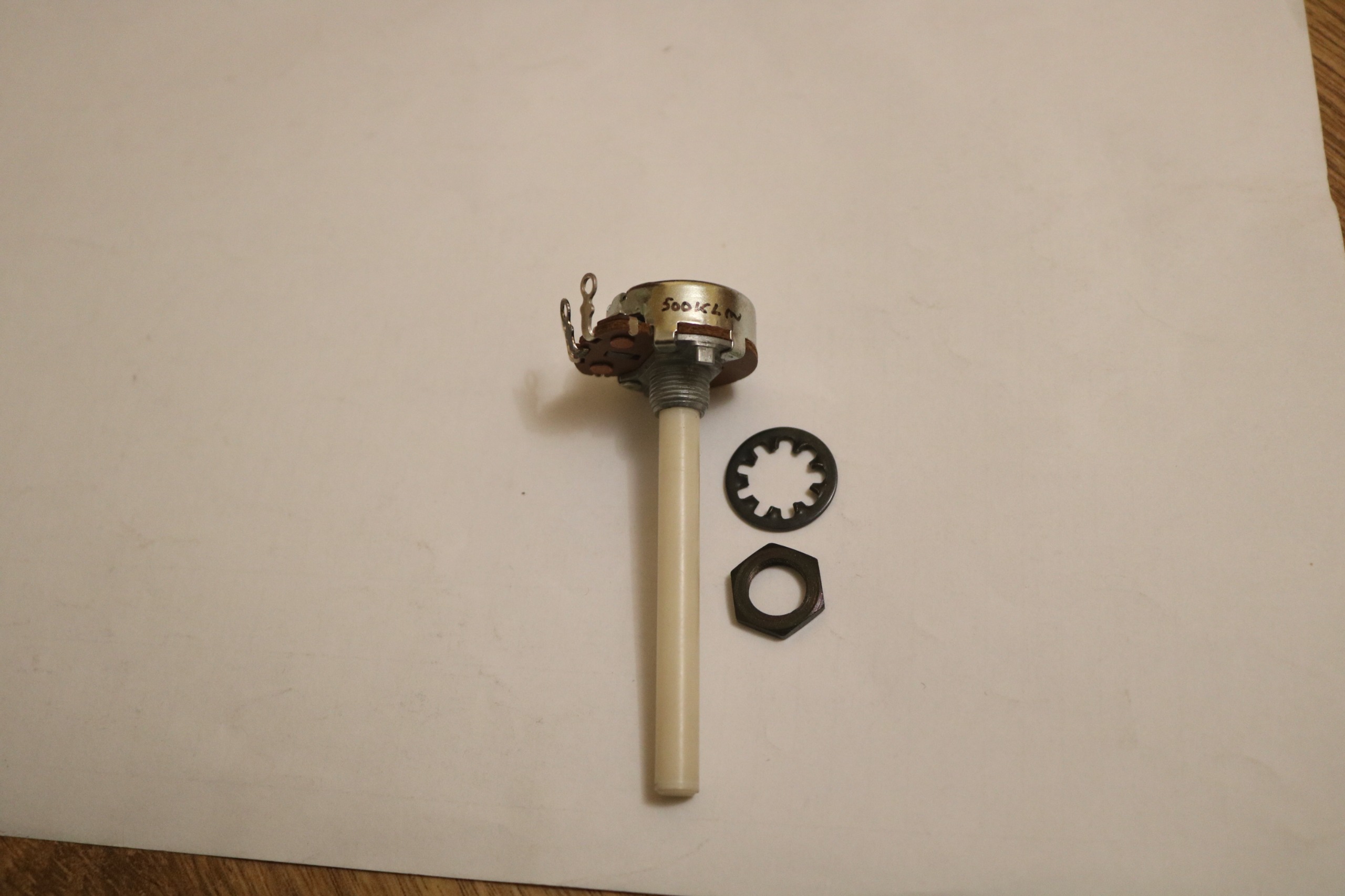 ولوم قدیمی کربنی با شفت چرخش عایق به مقاومت 500 کیلو اهم با تغییرات خطی. ساخت انگلستان مربوط به دهه های 50 یا 60 میلادی. طول شفت در حدود 58 میلیمتر و قطر ولوم حدود 20 میلیمتر، مهره اتصال با واشر بر روی همه وجود دارد.