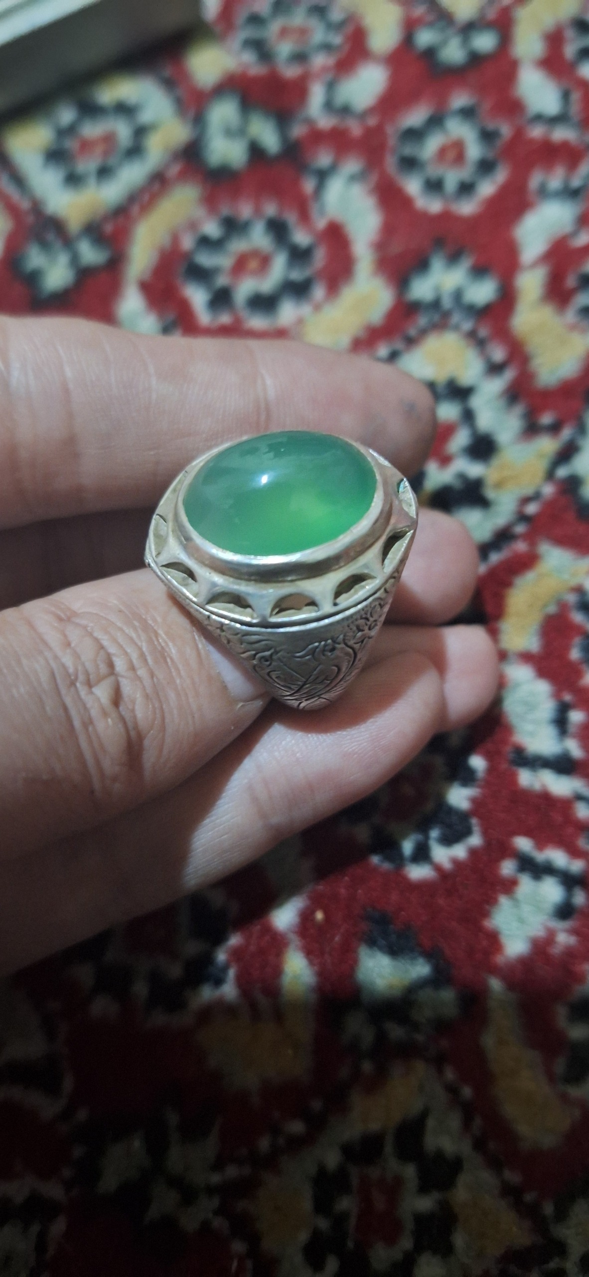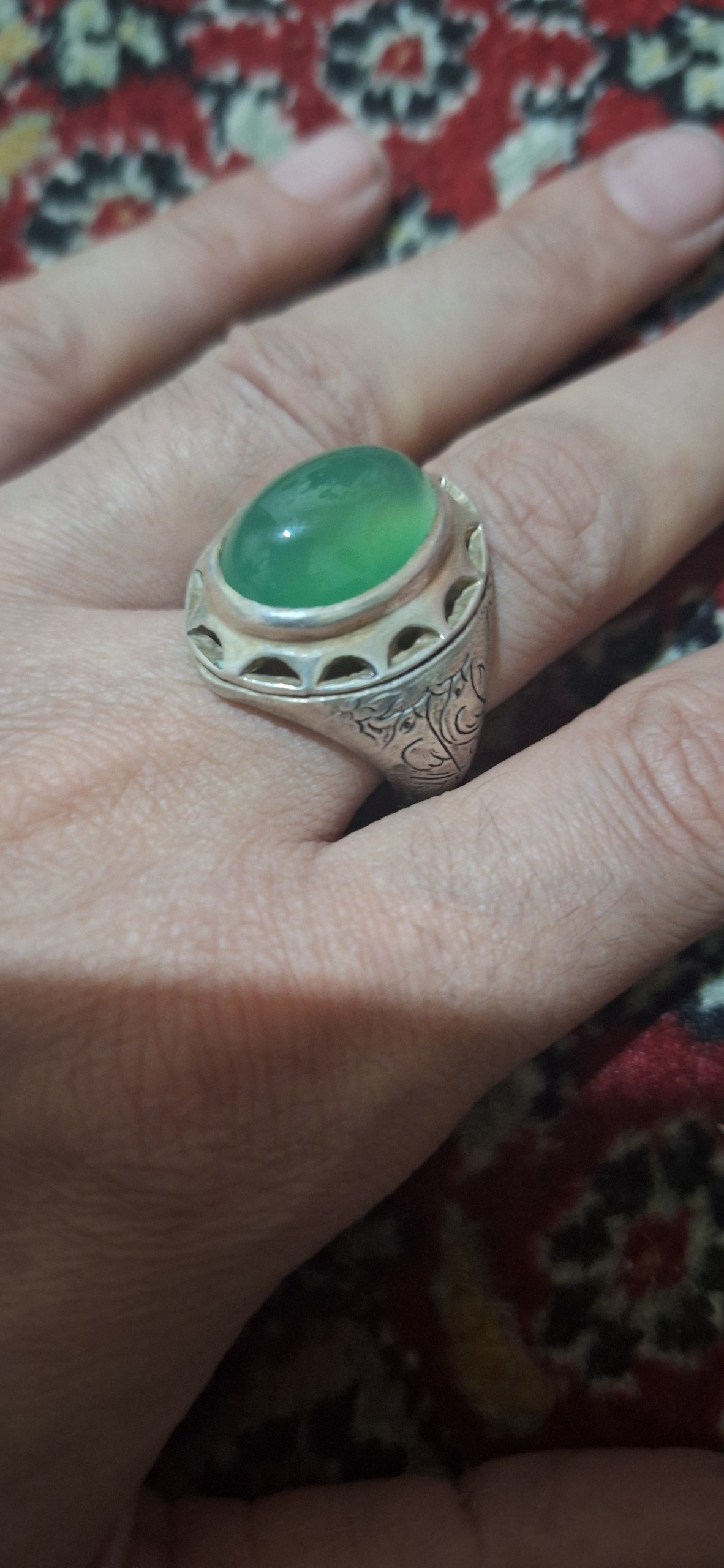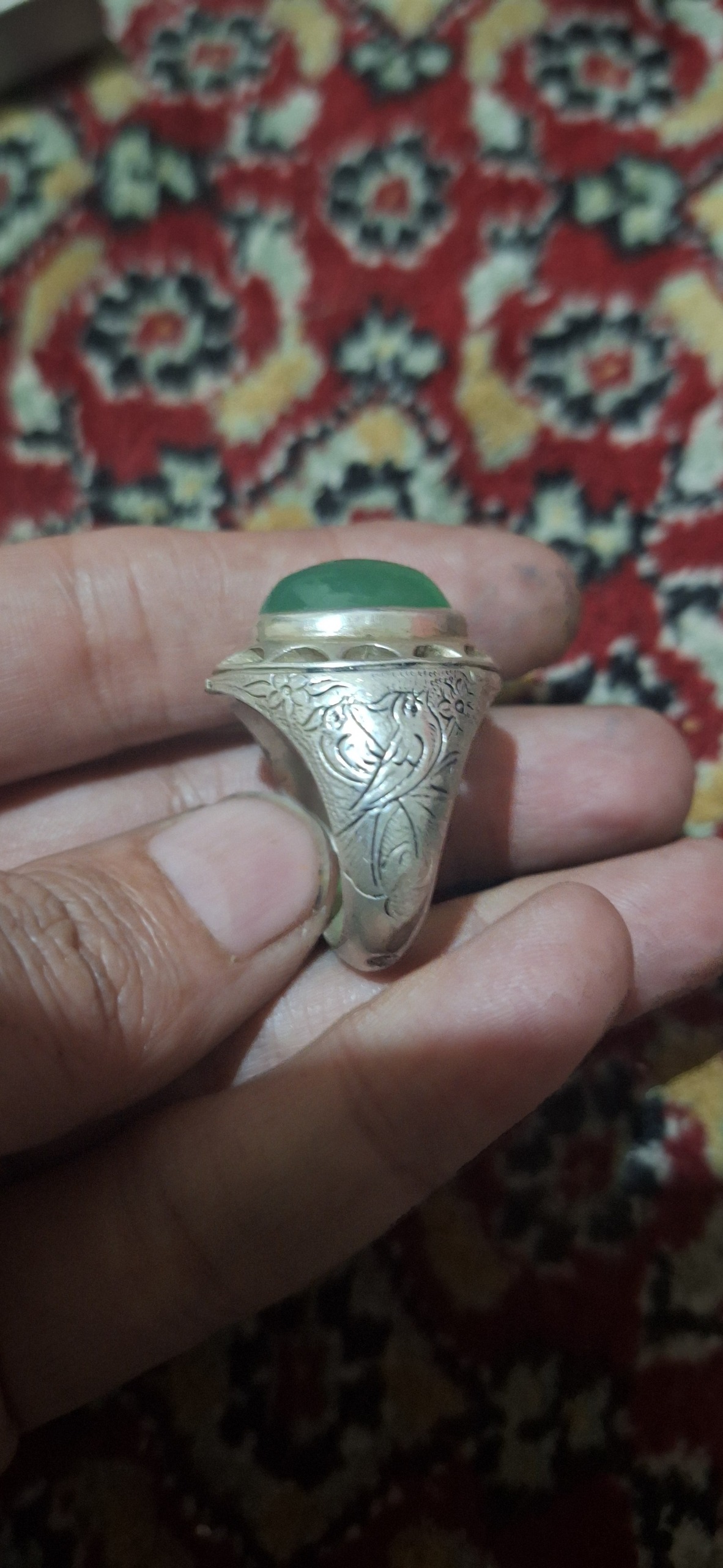 انگشترنقره قلمزنی نگین عقیق وزن21گرم 900صوت