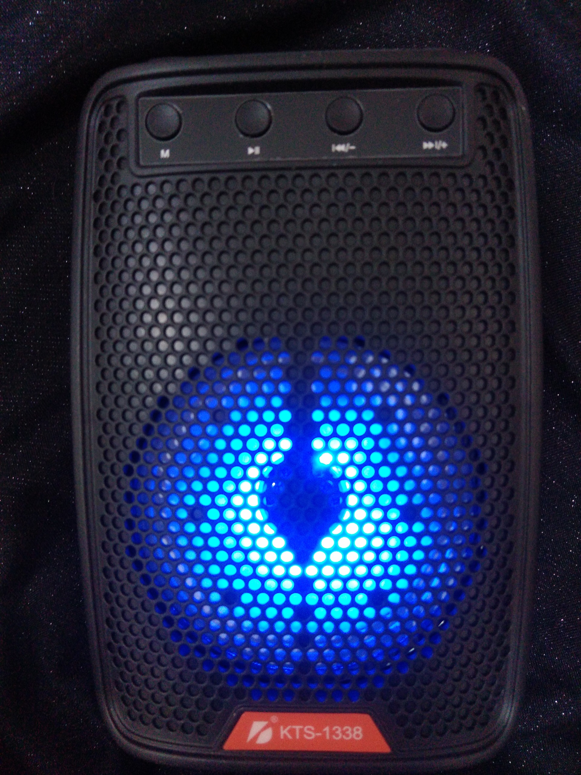 اسپیکر قابل حمل 4" با قابلیت اتصال میکروفن مموری کارت فلش بلوتوث 5ولت قدرت باند 5 وات زمان کار 2 ساعت در ولوم 60درصد زمان شارژ کامل 3 ساعت پشتیبانی از مموری کارت 32 گیگ همراه با کابل شارژر باتری 500 میلی آمپر