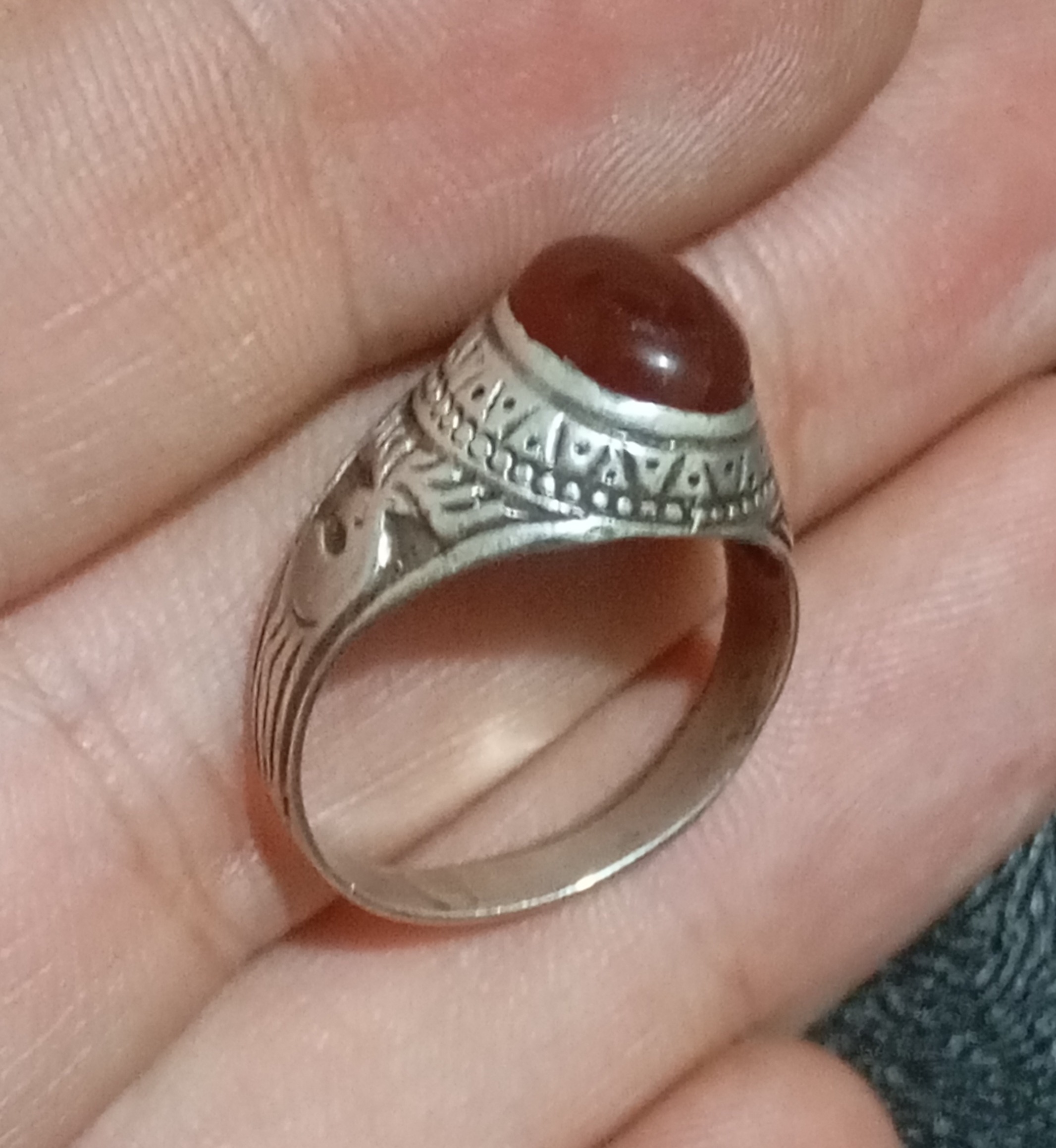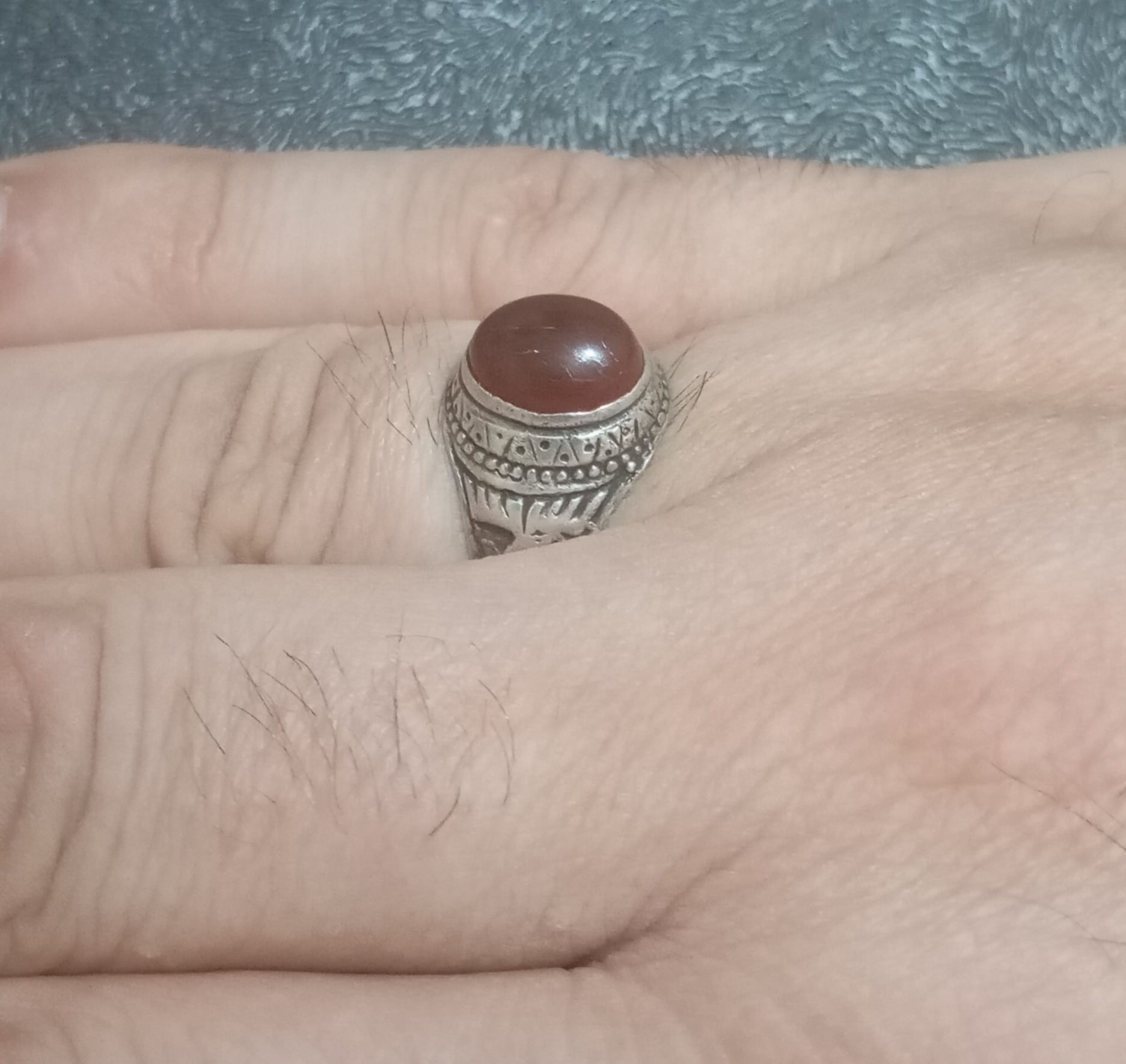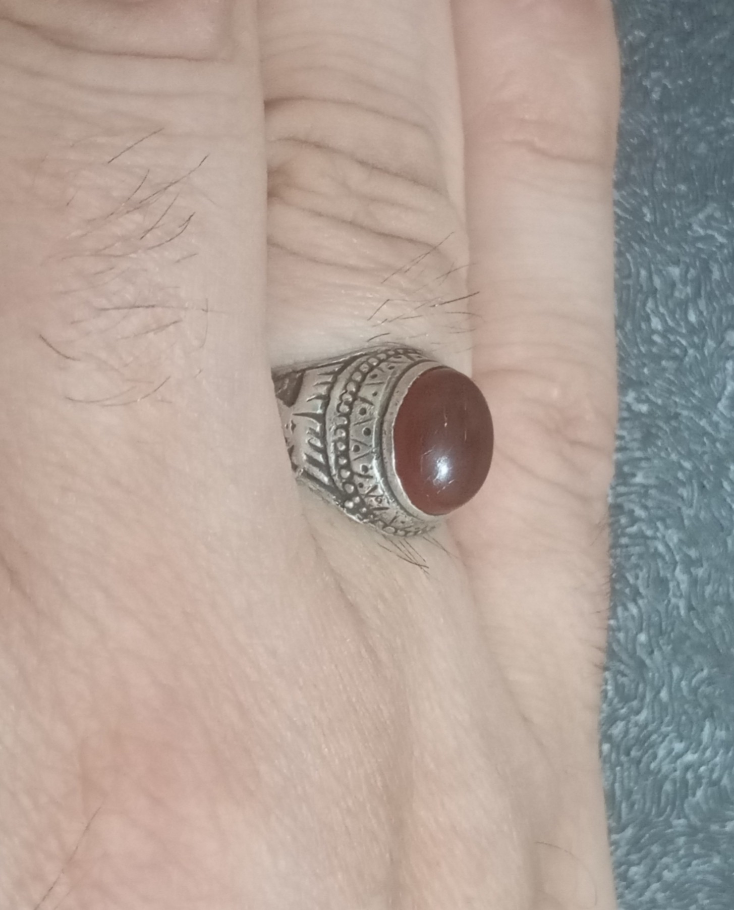 انگشتر نقره با طرح گوزن روی رکاب، نگین عقیق