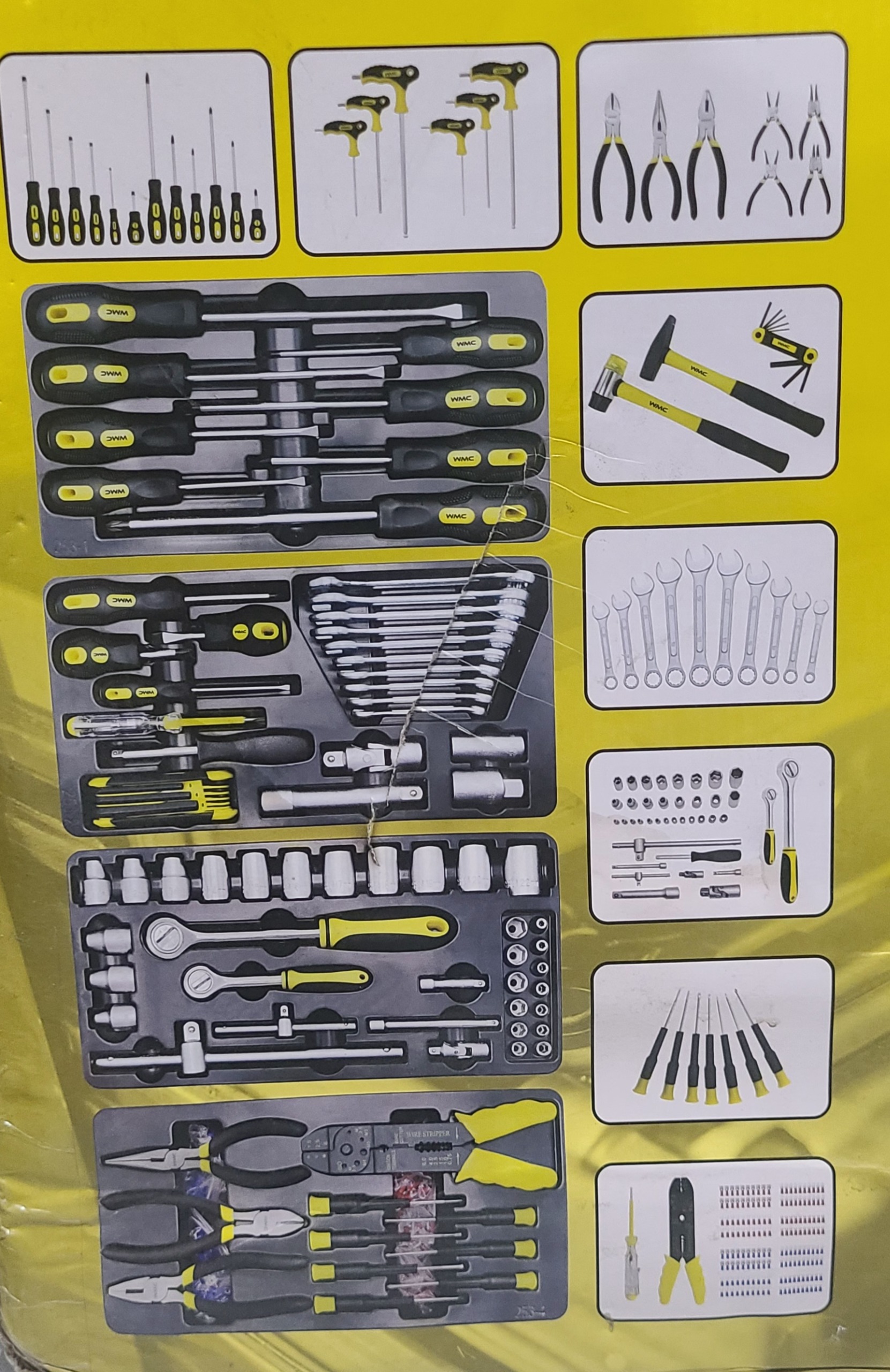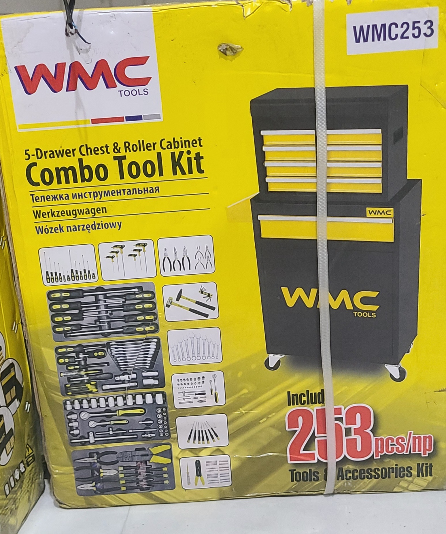 جعبه ابزار 253 پارچ wmcروس جعبه ابزای شیک جمع جور و خاص برای فنی کارهای عزیز جنس جعبه فلزی هست داری 5 کشو که داخل هر کشو ابزار خاص خودش هست مناسب استفادهای خانگی و نیمه صنعتی وکارگاهی