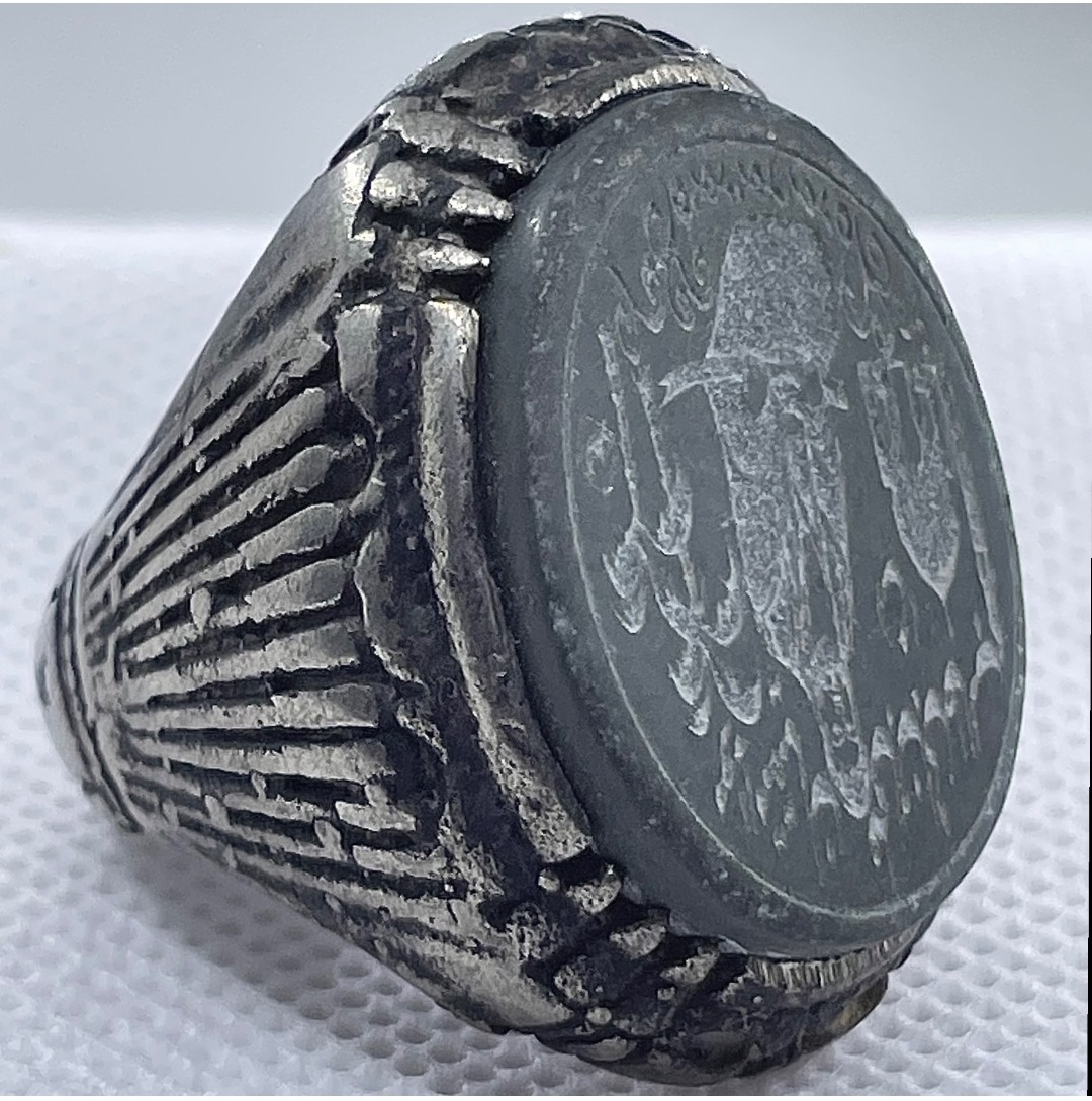 انگشتر یشم معدنی سبز حکاکی کلکسیونی
