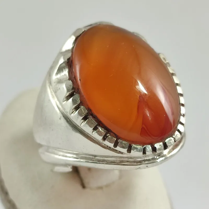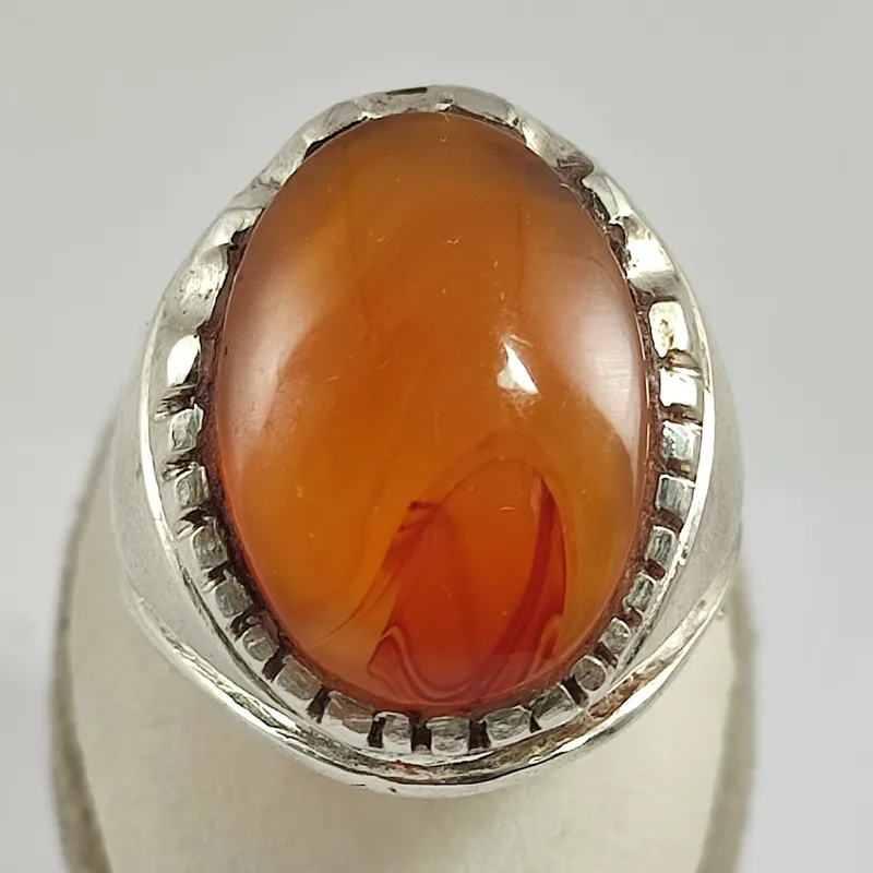 انگشتر نقره عقیق سرخ پرتقالی یمنی