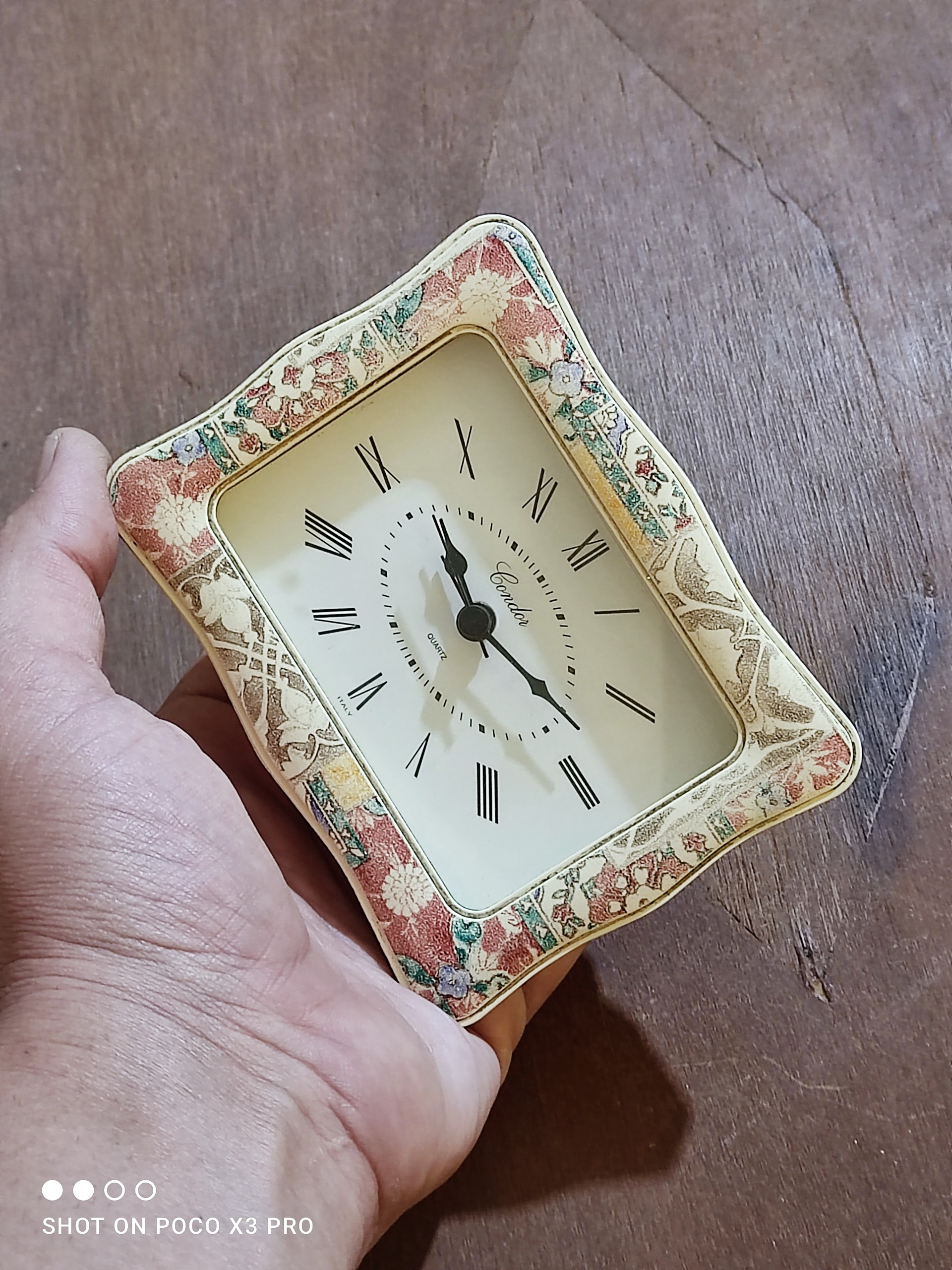 ساعت قدیمی باتری خور ایتالیایی برند کاندو سالم و تمیز و بکر مطابق تصاوی. جنسش پلاستیک بسیار محکم و حونداریه قسمت جلوش شیشه یه ساعت بسیار محکم و زیباییه