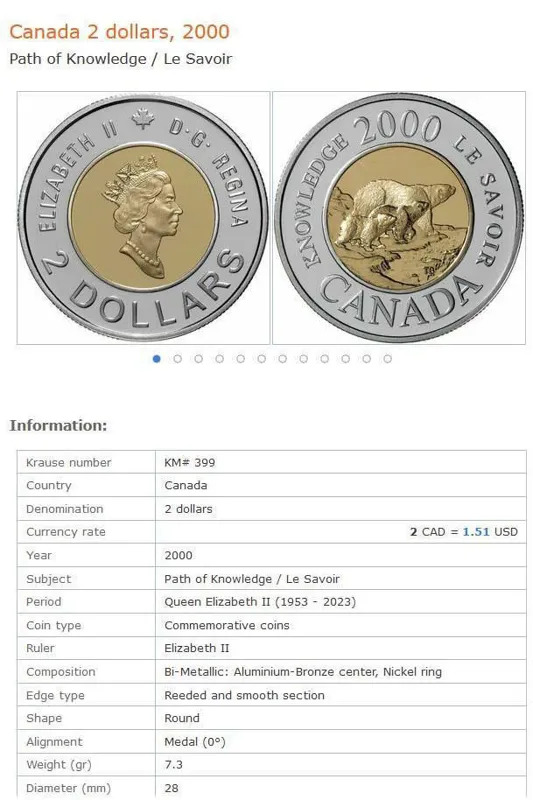 سکه یادبودی 2دلار کانادا 2000 (نایاب)