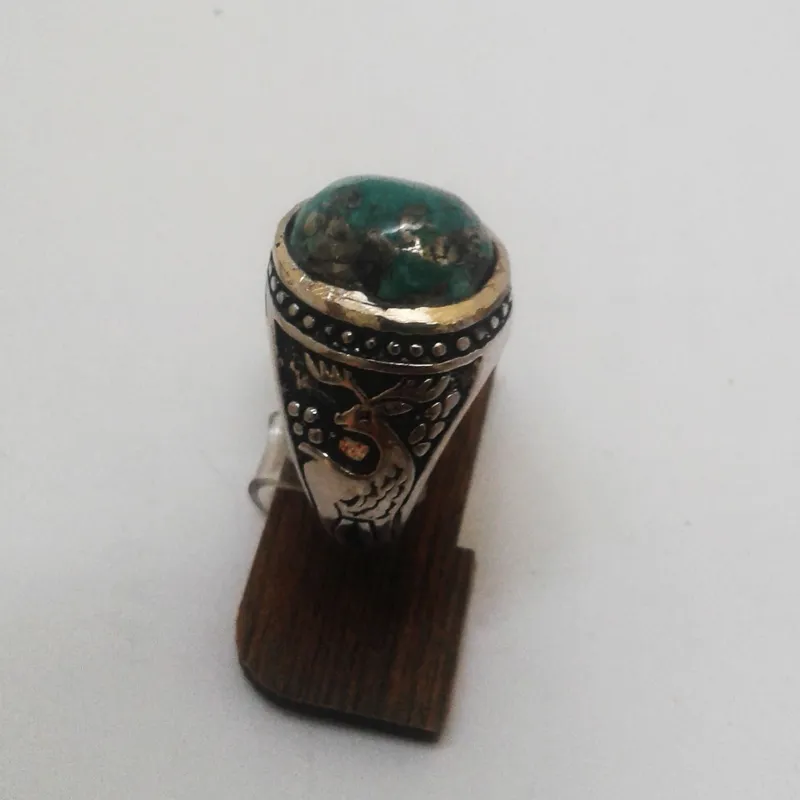 انگشتر فیروزه نیشابور قدیمی رکاب نقره عیار پایین | | وزن: 8.5 ~~ گرم | | سایز: 58 | | |