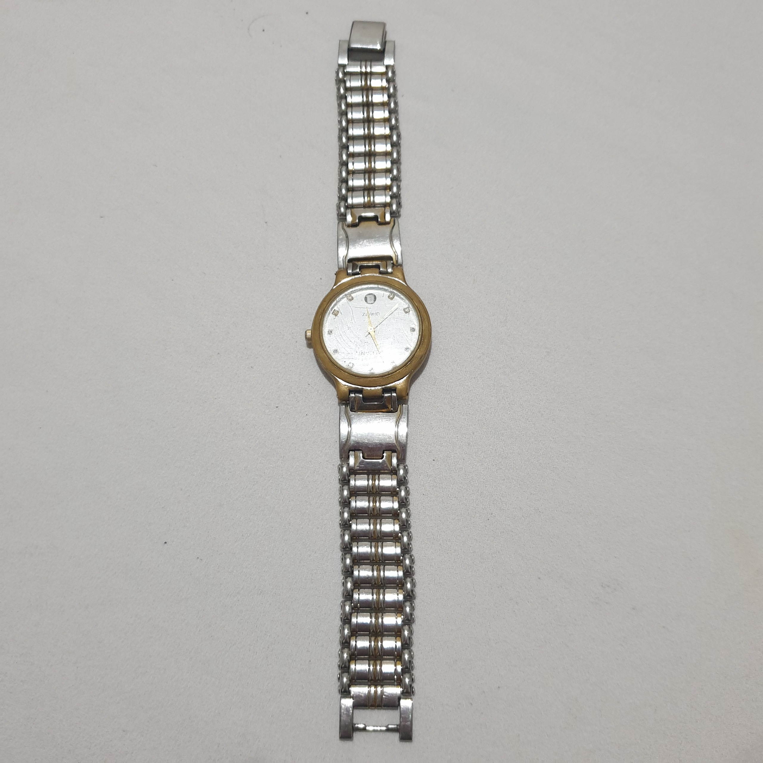 ساعت مچی قدیمی elegant دور برنجی تقویم دار