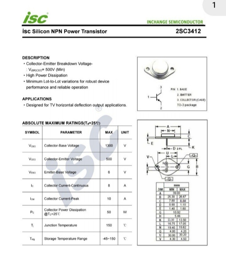 ترانزیستور قابلمه ای 500v/8A 50W C3412 اوریجینال