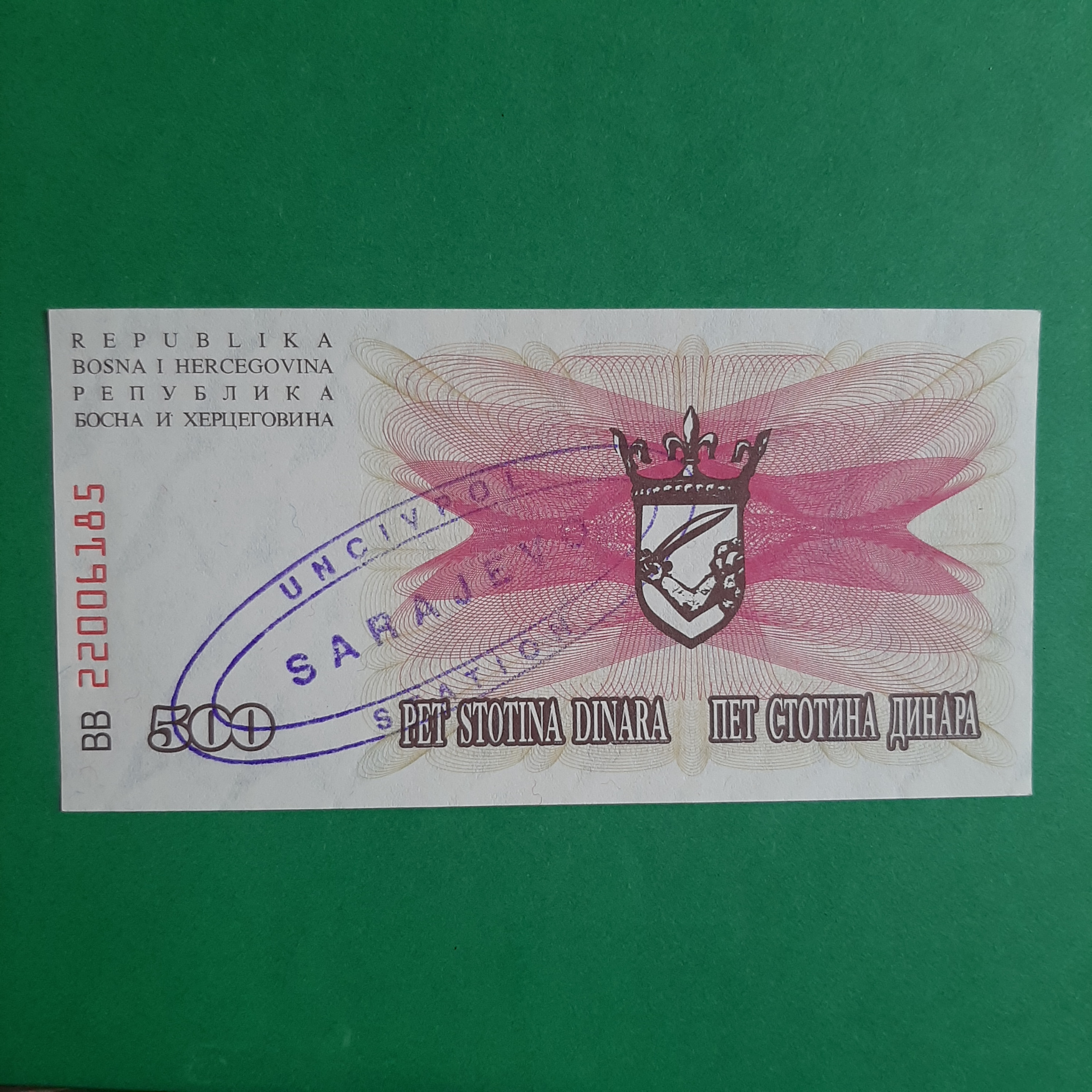 500 دینار بوسنی (با مهر سارایوو در پشت)