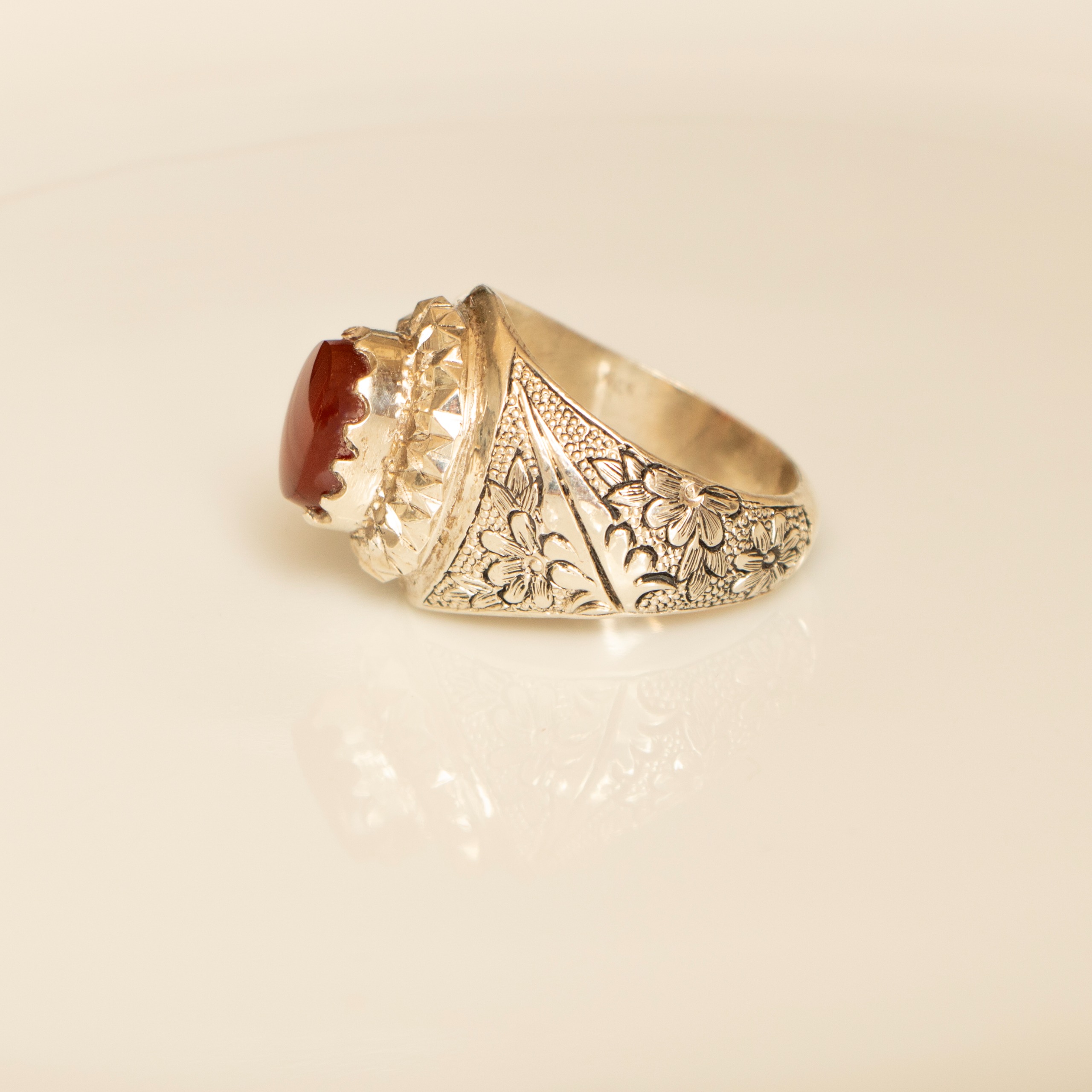 این انگشتر مردانه با رکابی دستساز از نقره خالص 925 و سنگی از عقیق طبیعی ساخته شده است؛ ترکیبی از هنر سنتی و شکوه مردانه. وزن متعادل 17 گرم و سایز 65، آن را به گزینهای ایدهآل برای استفاده روزمره و رسمی تبدیل کرده است. درخشش نقره و رنگ گرم عقیق، حس اعتماد و قدرت را در کنار ظرافت ایرانی به همراه دارد.7