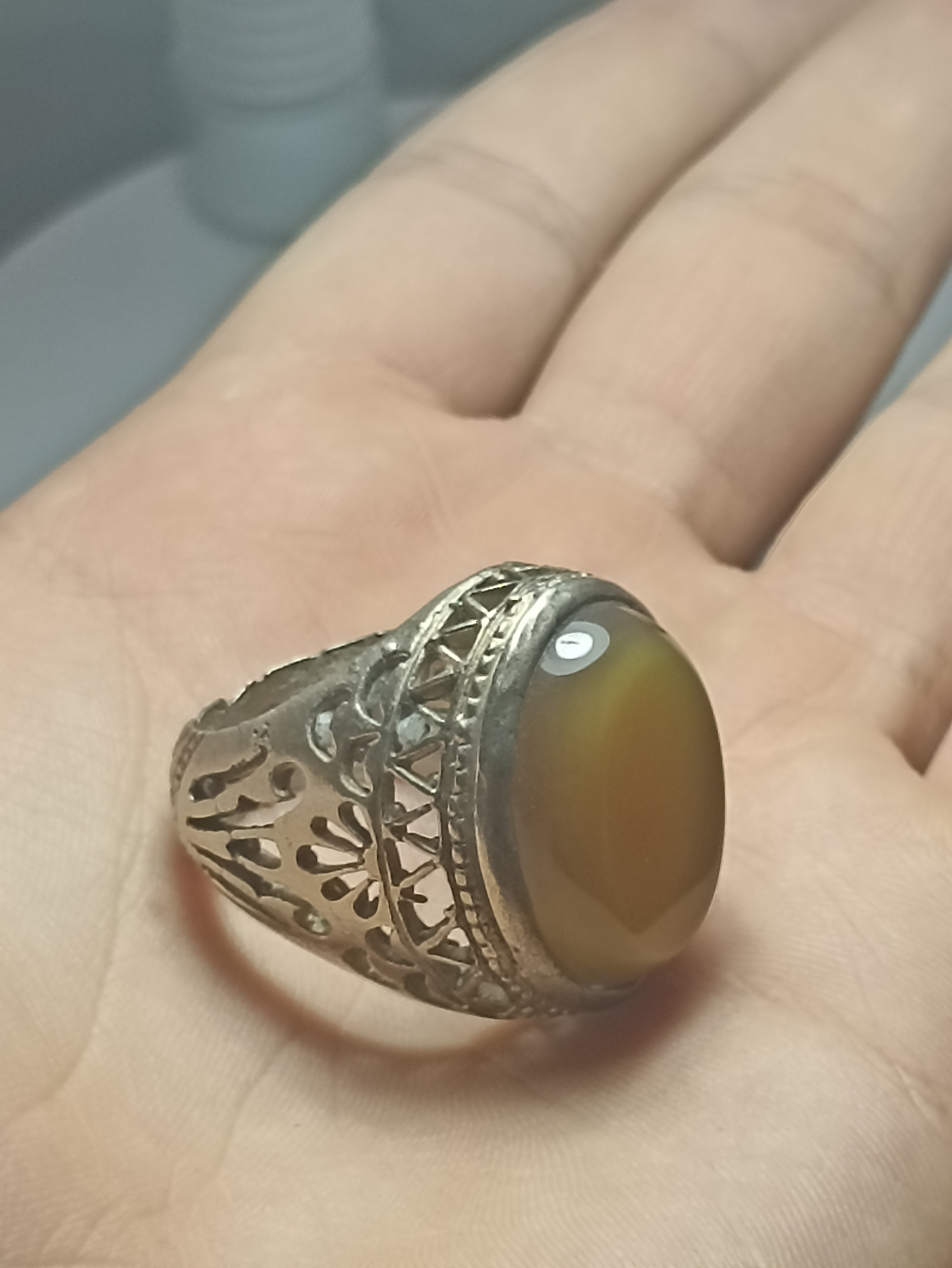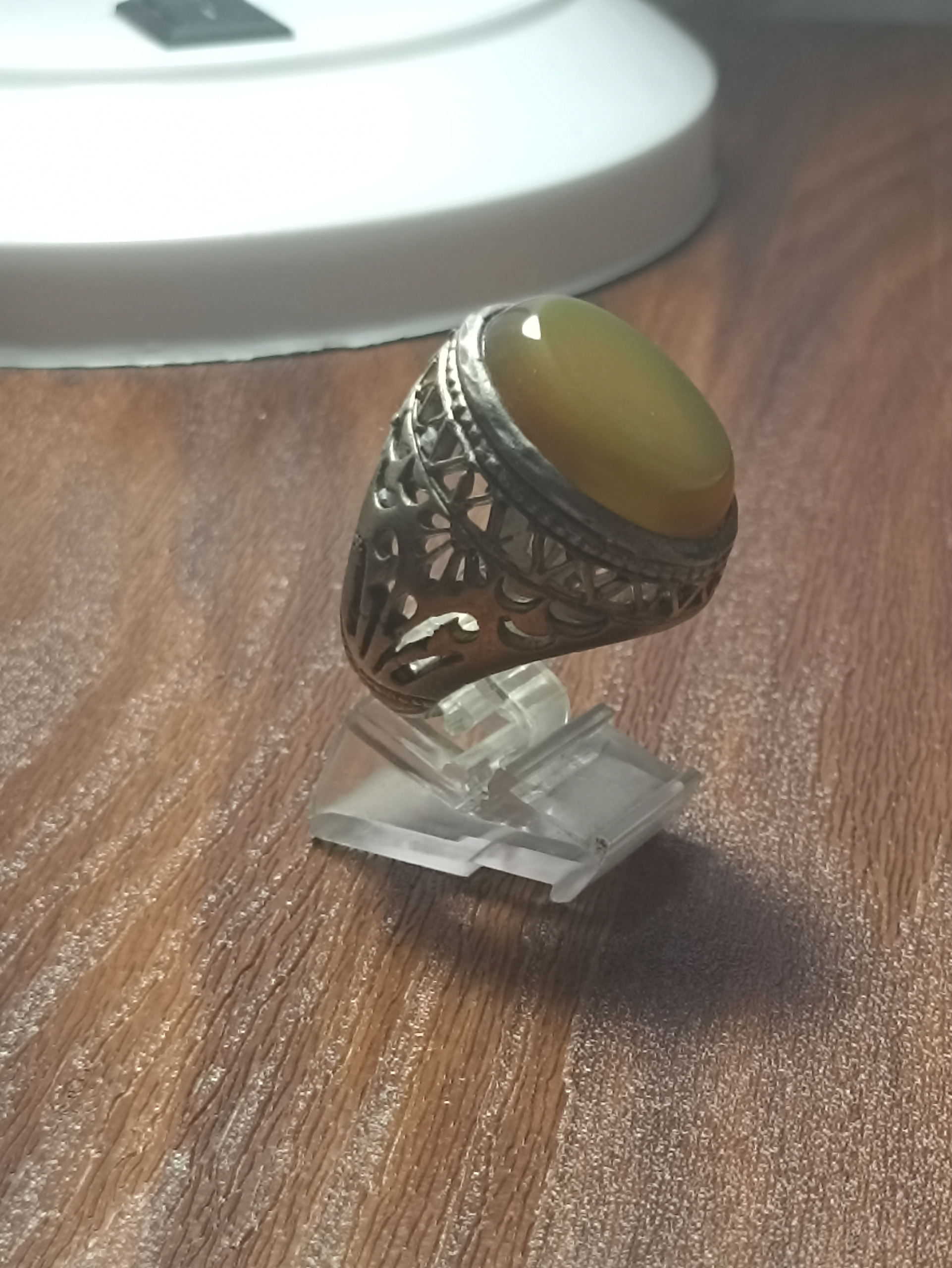 انگشتر عقیق زرد طبیعی با رکاب عیار بالای غول پیکر