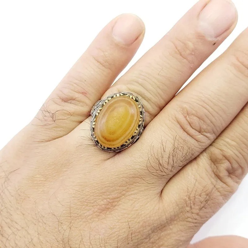 انگشتر نقره مردانه عقیق سه پوست کد 34854