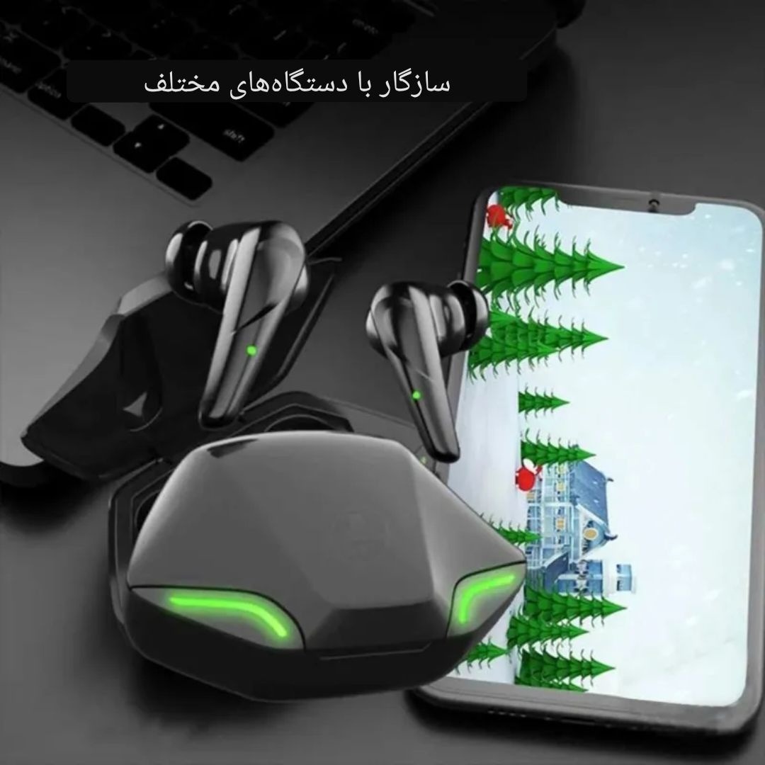 هندزفری بلوتوث گیمینگ game heeadset tws-27 جزو ایرپاد های بسیار پرکاربردی و سه گانه که هم برای پخش موسیقی و مکالمه و هم حالت بازی از آن استفاده کرد.شکل ظاهری این کیس و سرگوش ها بسیار منحصر بفرد، جذاب و با طراحی گرافیکی و ترکیب با چراغ های LED خیره کننده مخصوص بازی و عملکردهای روزانه یک گزینه فوق العاده برای گیمرها و دوستداران بازیهای آنلاین با گوشی و تلفن همراه است. اگر اهل بازی با گوشی هستید میدانید صدا و تصویر در بازی هیجان آن را دو چندان میکند؛ وجود یک هدست بیسیم جمع و جور که بتوان نیاز های مختلف شما را برطرف کرده و و در هنگام بازی صداهای انفجار، شلیک و بخوبی ارائه و یک تجربه صدای فراگیر و لذت بخش با کمترین تأخیر کم و استریو و ارائه دهد یک نیاز برای گیمرها است؛ در اینجا این هدست game heeadset tws-27 برای اجرای بازی های آنلاین مانند پابجی، Call of Duty و غیره بسیار ایده آل است. نوعی طراحی این هندزفری بلوتوث گیمینگ game heeadset tws-27 با ساختار ارگونومی منطبق با گوش انسان با پد های لاستیکی در طولانی مدت حتی کل روز، گوش را خسته نکرده و یک تجربه پوشیدن راحت و پایدار را به ارمغان می آورد. خود جعبه نگهدارنده شارژ نیز بسیار جمع و جور با وزن 36 گرمی بسیار سبک بوده و براحتی می توانید آنرا در جیب شلوار یا کیف خود قرار داده و در همه جا از آن استفاده کرد. این هدفون بی سیم با فناوری های TWS، بلوتوث ورژن 5.0، محدود برد 10-15 متری و فرکانس 2.4GHZ، کنترل لمسی هوشمند سرگوش ها، وجود میکروفون داخلی با قابلیت پاسخ گویی به تماس ها، تولید صدایی با کیفیت و HD را ارائه میدهد. کنترل لمسی هوشمند سر گوشها قابلیت مدیریت در تماس و پخش موسیقی بوسیله سیستم تاچی مجهز شده و جهت قطع و وصل کردن تماس یا پخش و توقف موزیک و صدا در بازی را به شما میدهد. کیس این مدل دارای باتری قابل شارژ داخلی با ظرفیت 300 میلی آمپر ساعت و گوشها هر کدام دارای باتری با ظرفیت 35mAh که توانایی ارائه 3 -4 ساعت زمان در حالت بازی، موسیقی و مکالمه بیشتر بسته به نوع حالتی که از آن استفاده میکنید دارد. قابلیت شارژ فوق العاده سریع و ذخیره و نگهداری شارژ در حالت استندبای به لطف درگاه و کابل تایپ سی که به همراه این ایرپاد گیمینگ ارائه شده است.