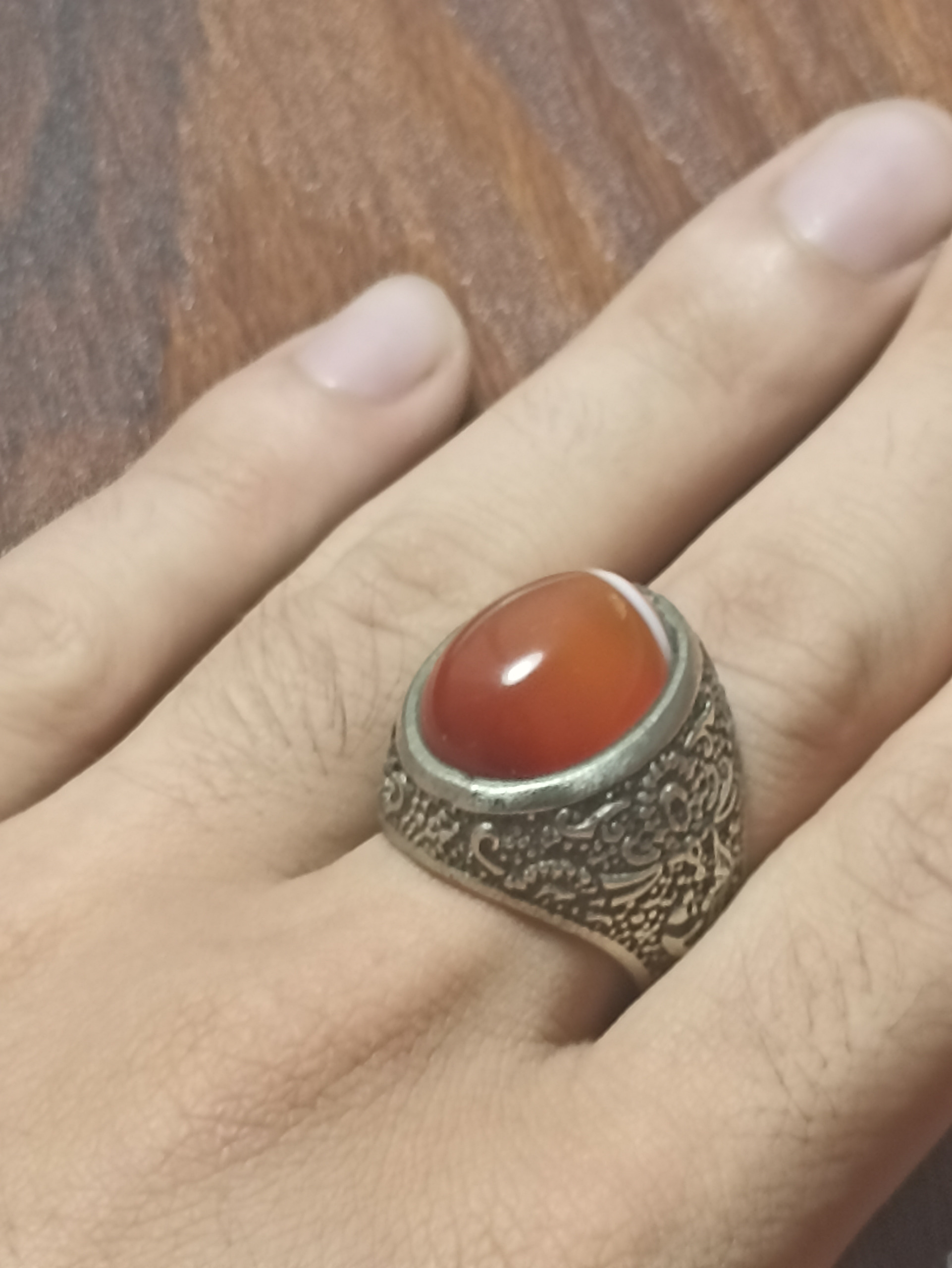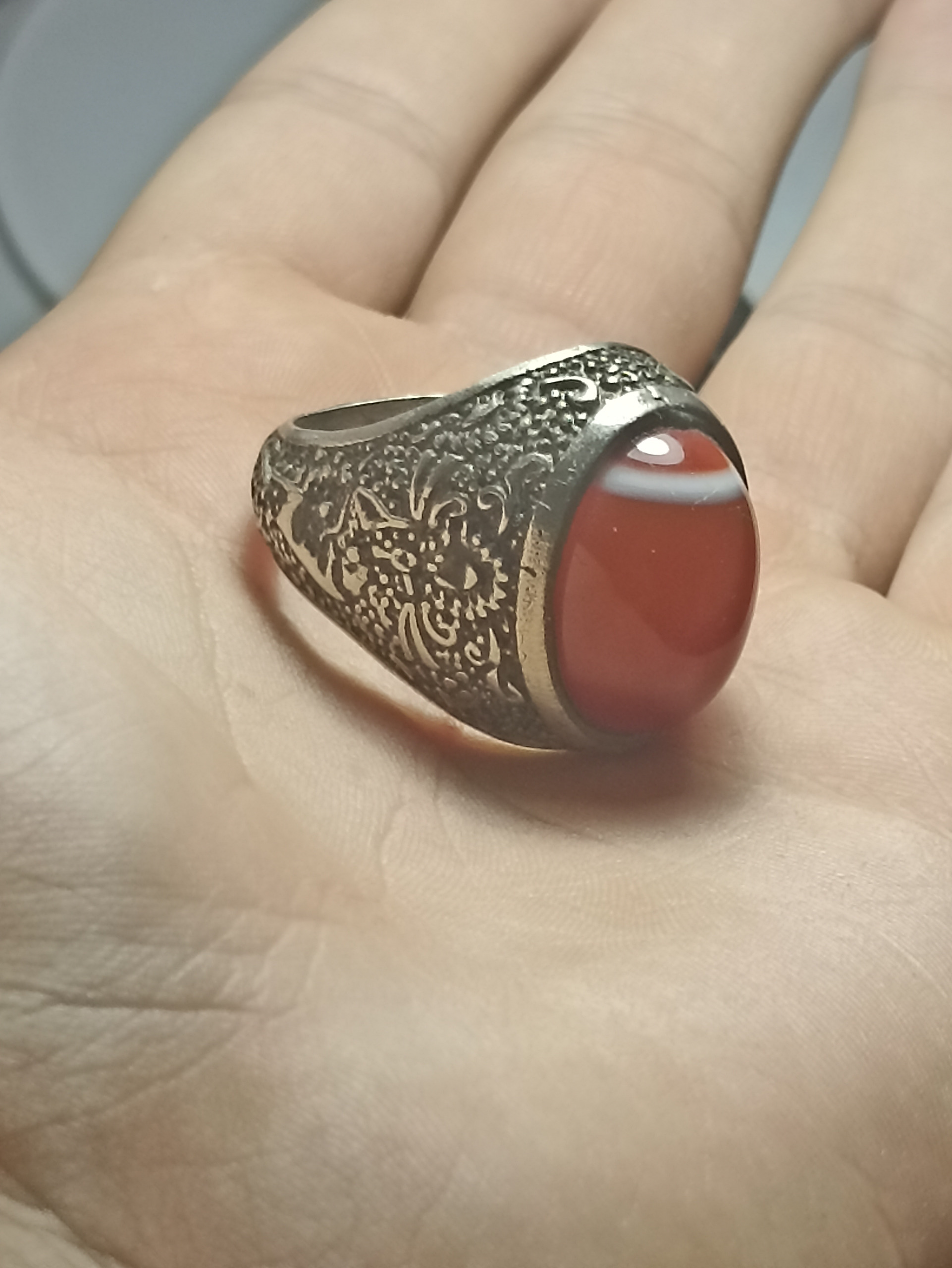 انگشتر عقیق سلیمانی با رکاب قلم زنی فوق العاده