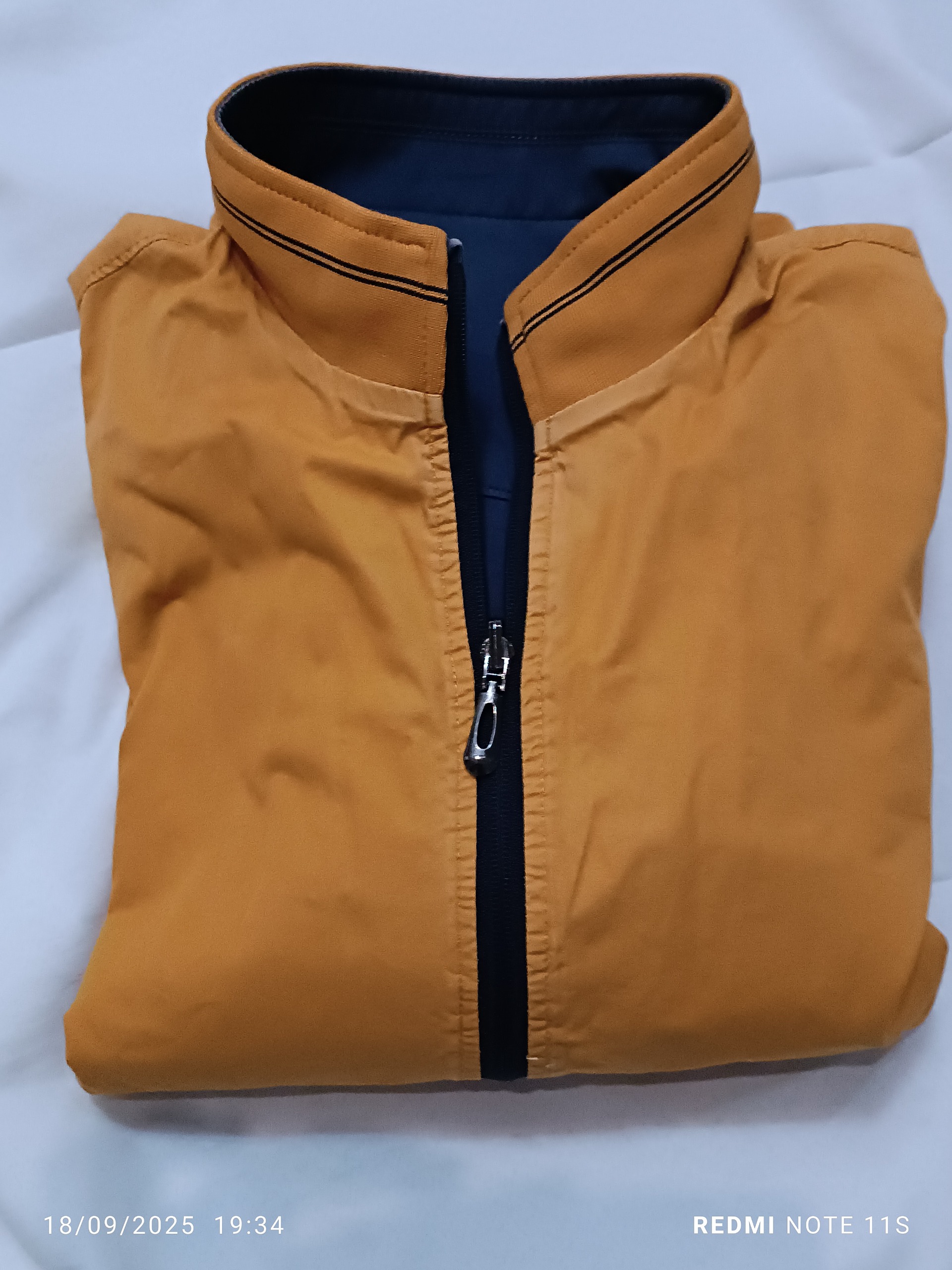کاپشن کتان چهار فصل و دو رو مردانه در حد نو و سایز 54 و قد آستین کاپشن 63 و عرض شانه 53 و عرض سینه 60 و قد 75 فوری به فروش می رسد .