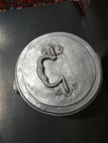 کیفیت مطابق تصویر .سالم و قابل استفاده .جنس فلز روی یا الومینیوم .سبک وزن .قطر 16 و ارتفاع 10 سانت .پیم پشت درب فابریک نیست