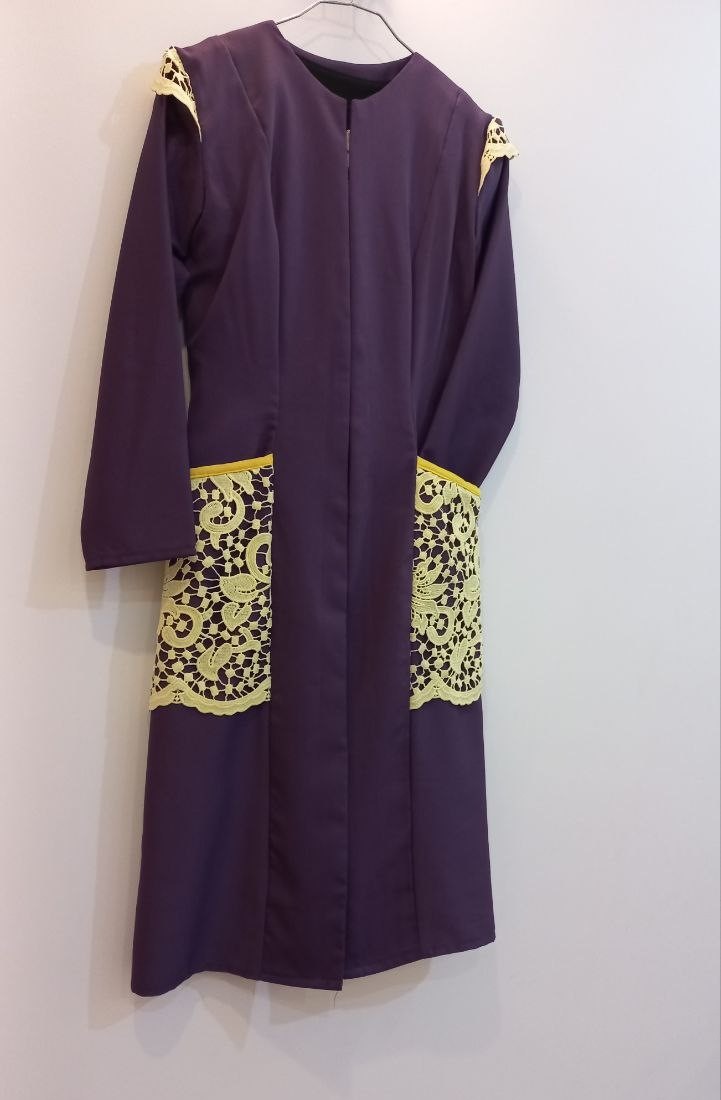 جلوی مانتو غزن میخوره و میشه جلو باز استفاده کرد. اندازه ها رو زمانی که دو لبه مانتو در کنار هم هست زدم و با غزن بسته است