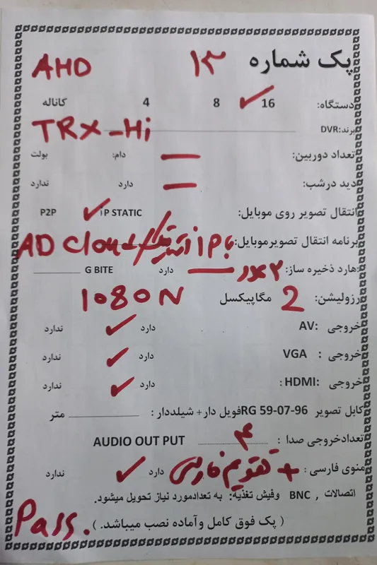 دستگاهdvr 16 1 کانال2مگاپیکسل شماره محصول 13