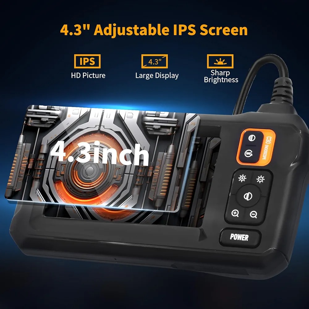 صفحه نمایش HD و رنگی با یک صفحه نمایش بزرگ IPS با کیفیت بالا 4.3 اینچی 1080p و زاویه دید گسترده، این دوربین آندوسکوپی صنعتی تصاویر ظریف و واقع گرایانه را با رنگهای بسیار بازسازی شده نمایش میدهد.