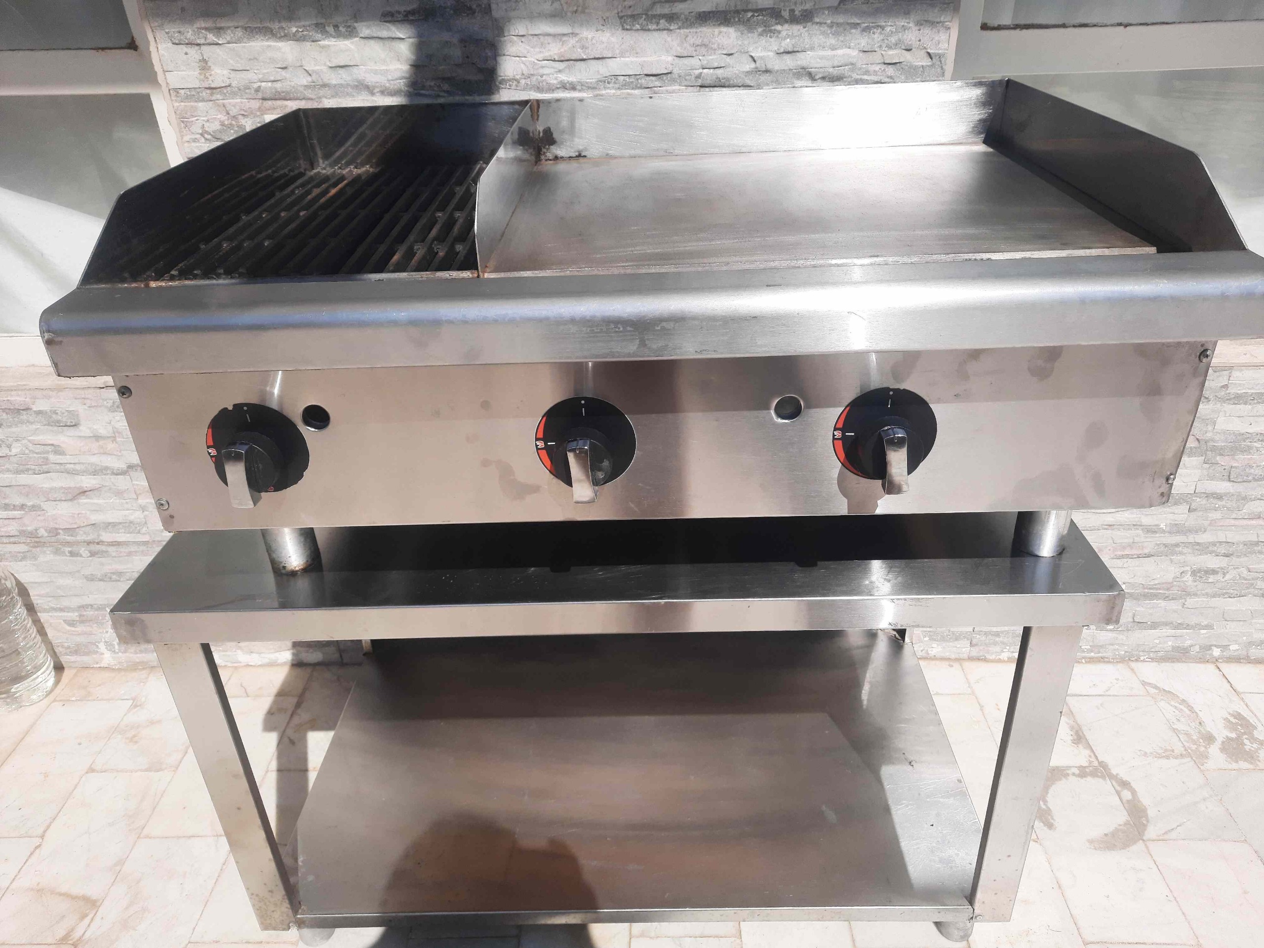 گریل ترکیبی 60گریل روغنی و 30 ذغالی میباشد 3 شعله با میز استیل طبق تصویر.