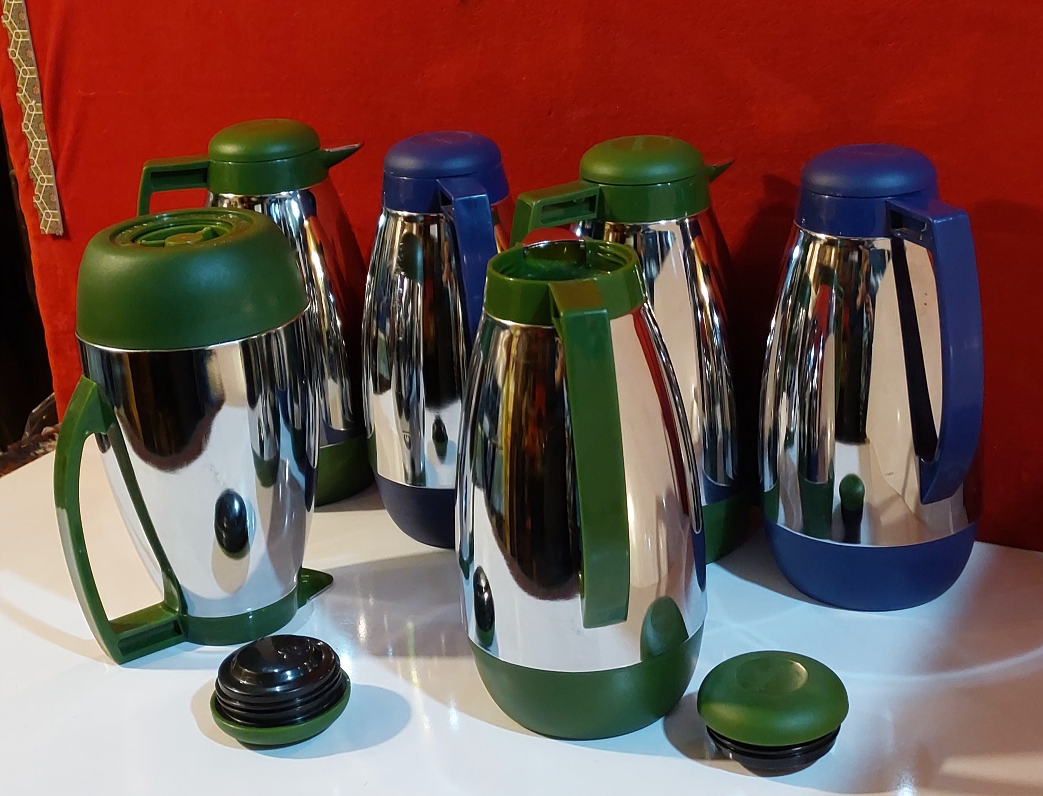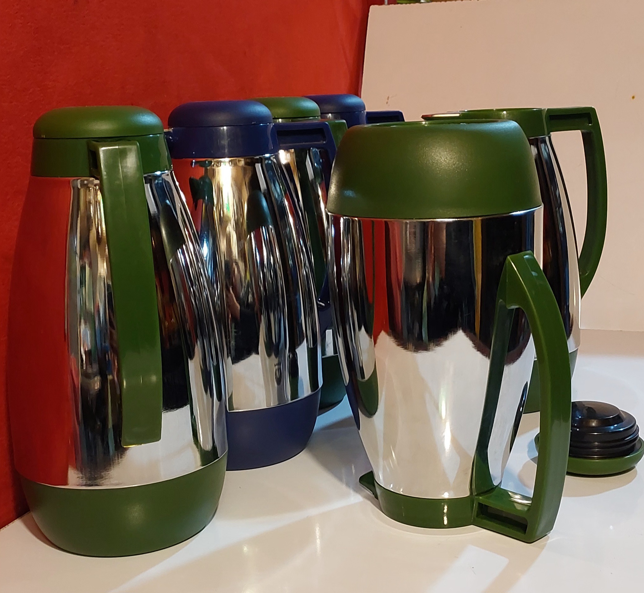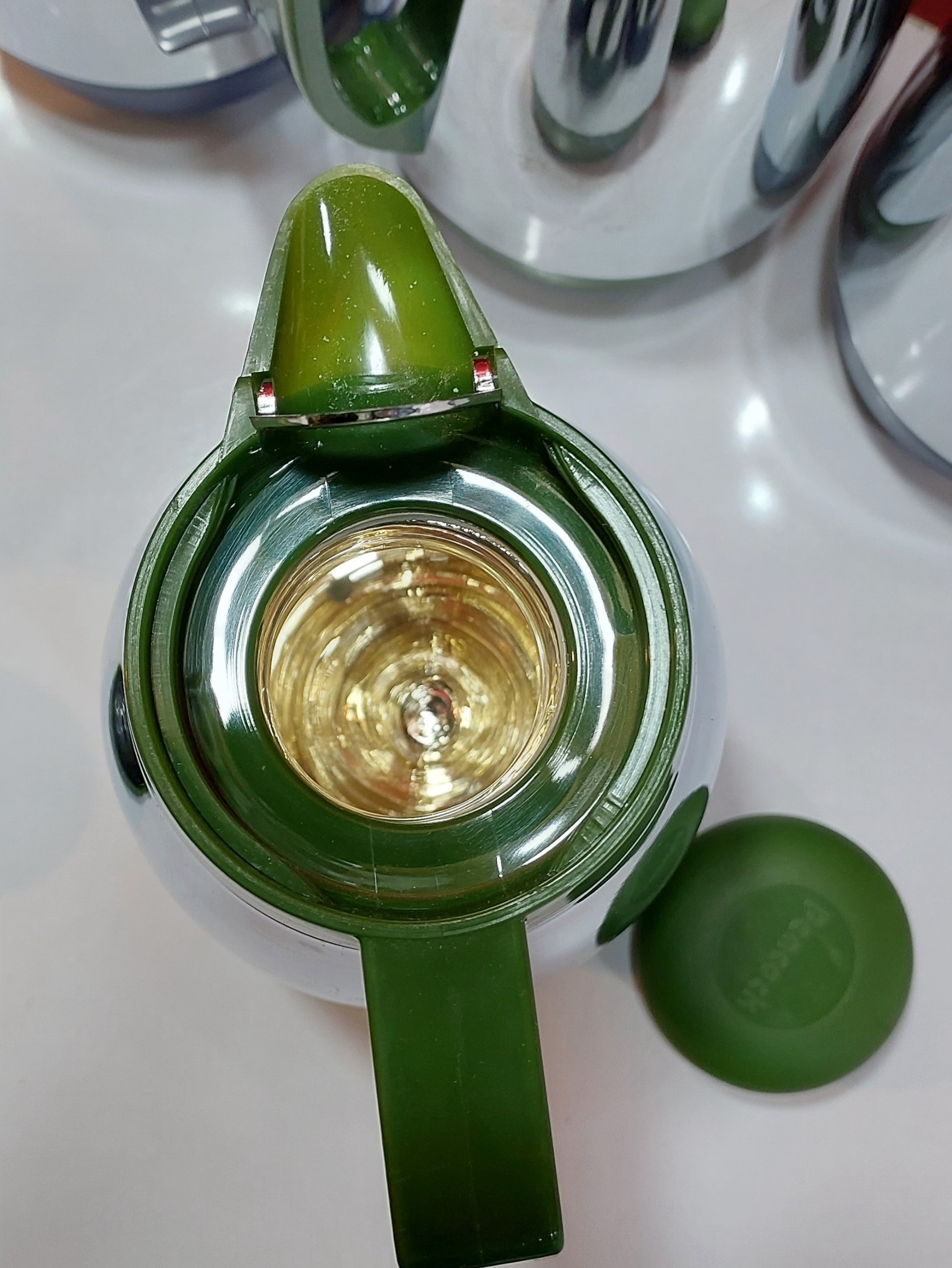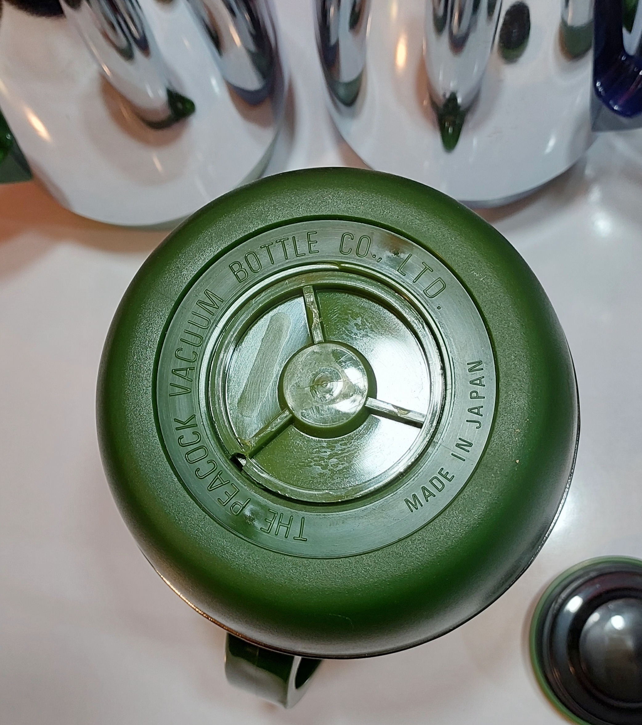 ساخت قدیم کشور ژاپن با برند معروف پیکوک تقریبا یک لیتری در دو رنگ سبز و آبی خاص و کمیاب با ماندگاری طولانی استیلی اصلی کاملا سالم استفاده نشده تمیز طبق تصاویر لطفا دقت فرمائید با قیمت مناسب برای هر عدد .