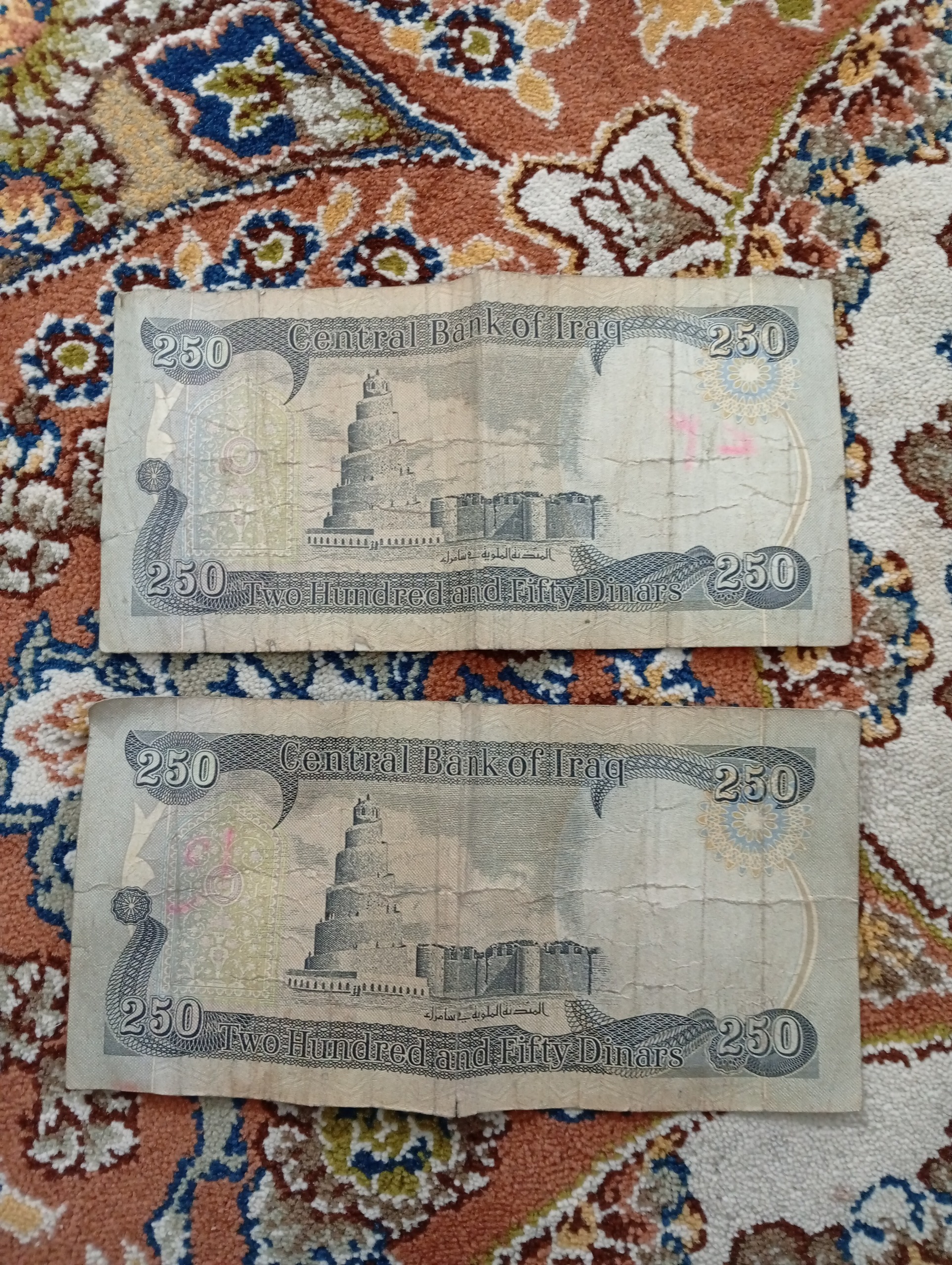 2 برگ 250 دیناری عراق دست دوم ولی بدون اثر خودکار و چسبی و پارگی و در صورت خرید دو برگ با سریالهای در تصویر ارسال میگردد و قیمت درج در آگهی برای دو برگ میباشد پس در خرید خود دقت فرمایید