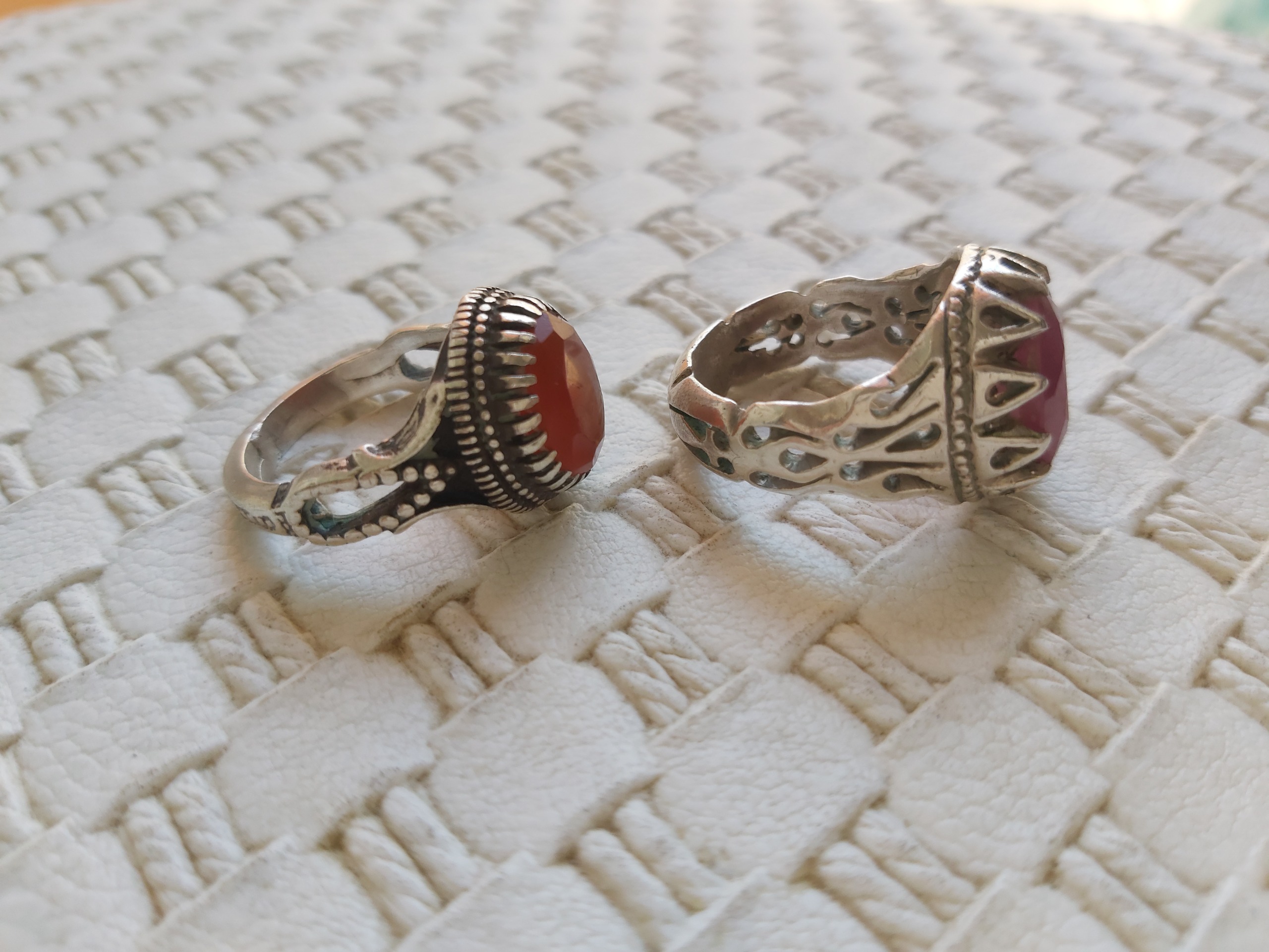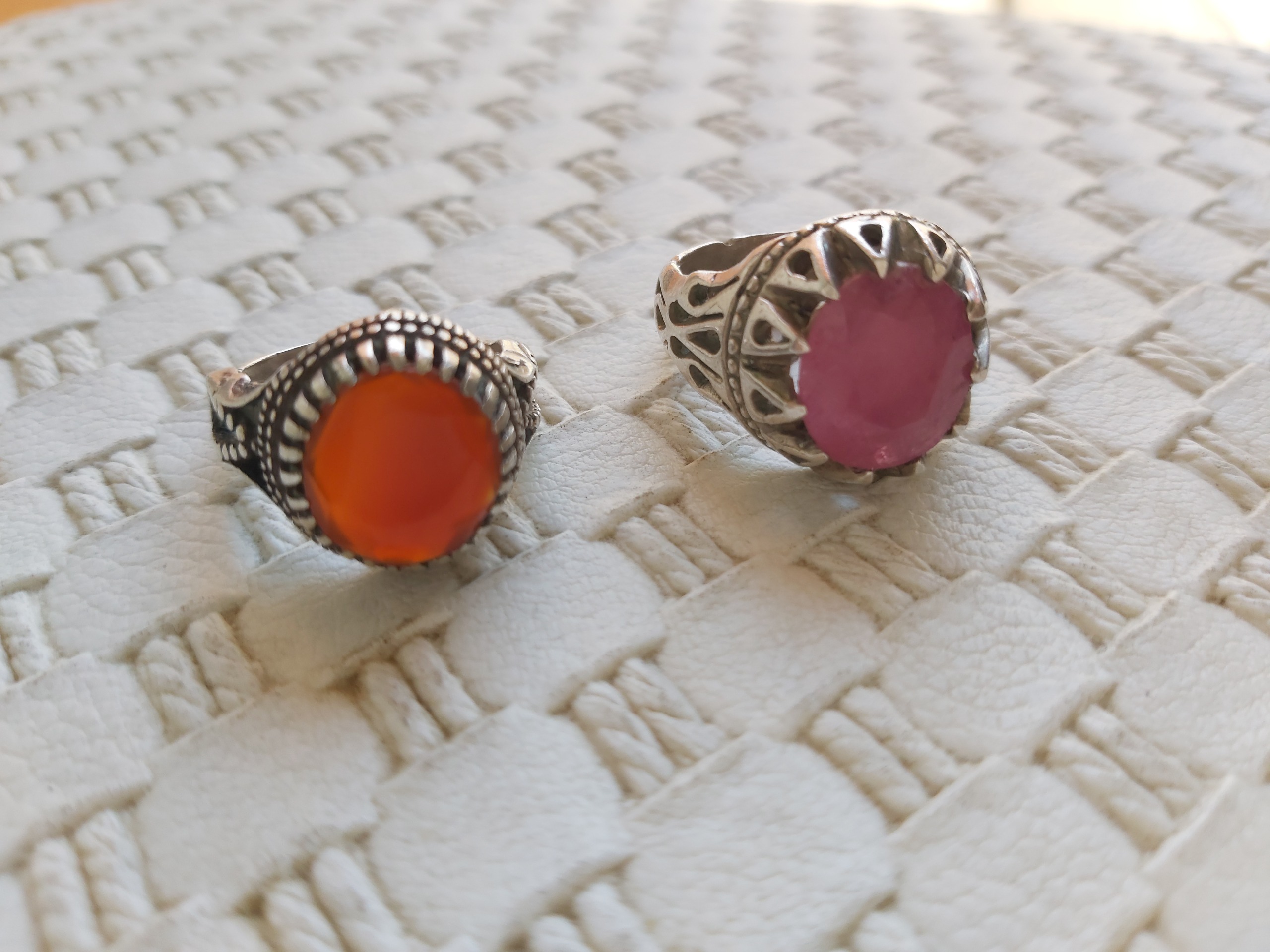 جفت انگشتر نقره 925 عقیق پرتقالی و یاقوت آفریقایی