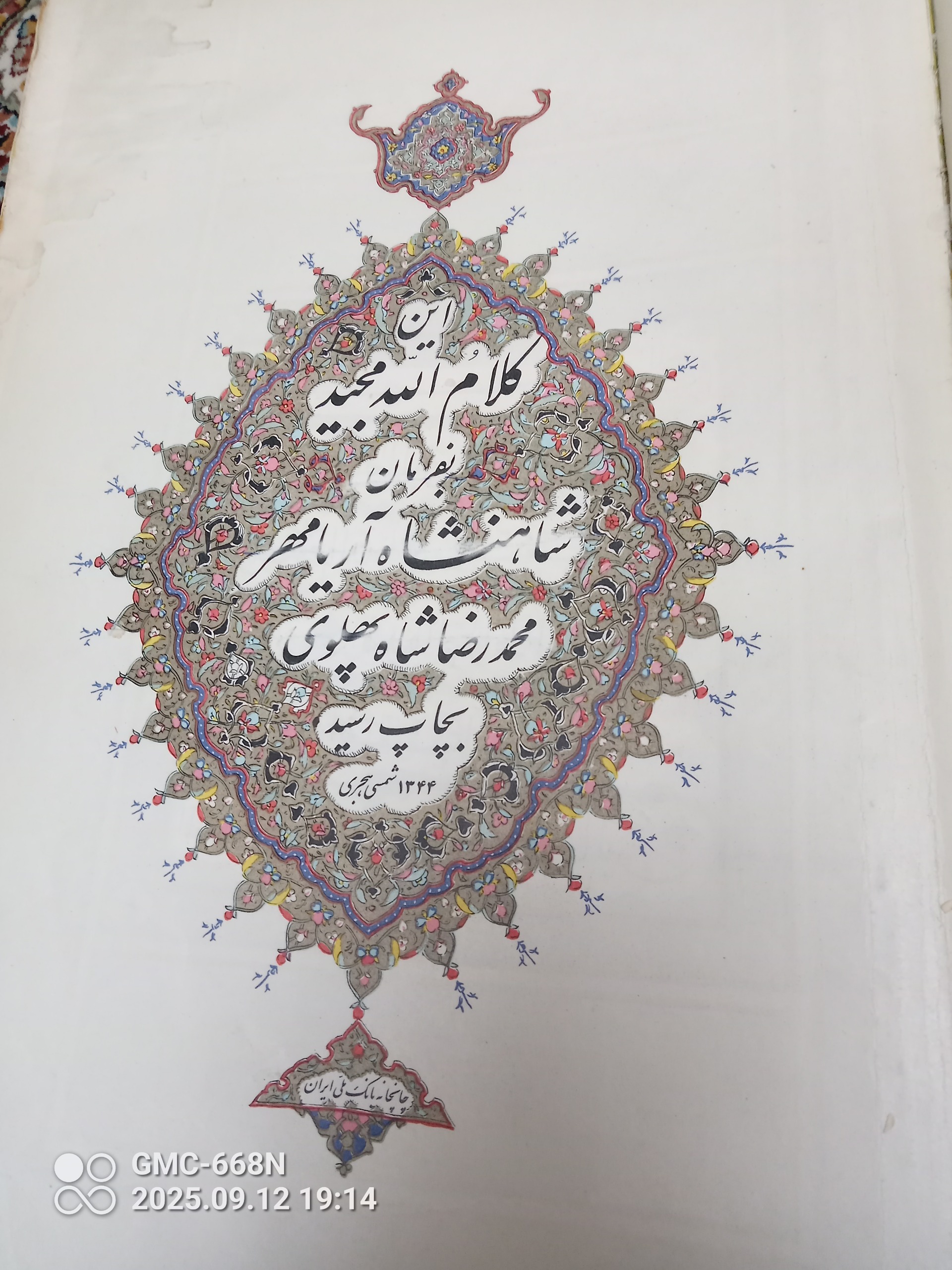 قرآن تمام تذهیب شده بفرمان محمدرضاشاه