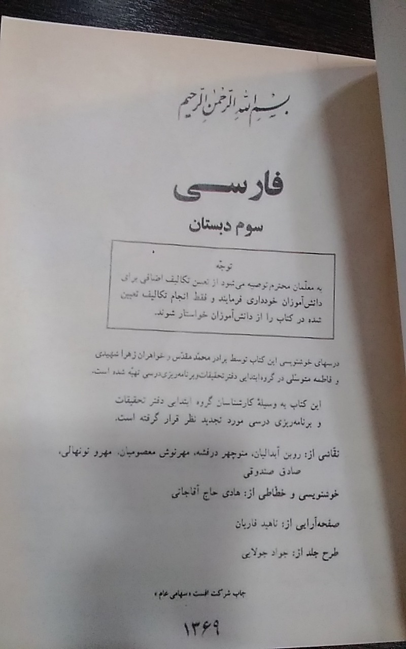 کتاب نوستالژی فارسی سوم دبستان 1369 تجدید چاپ کامل