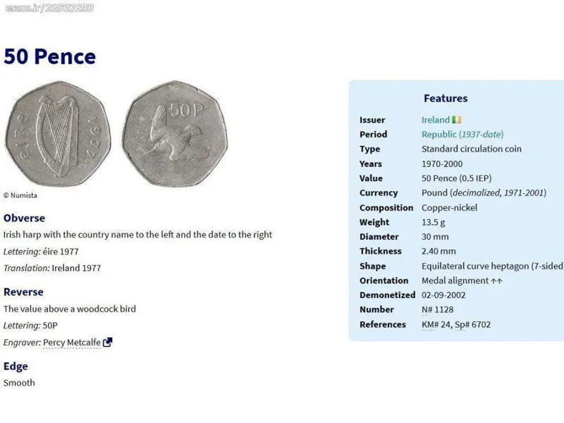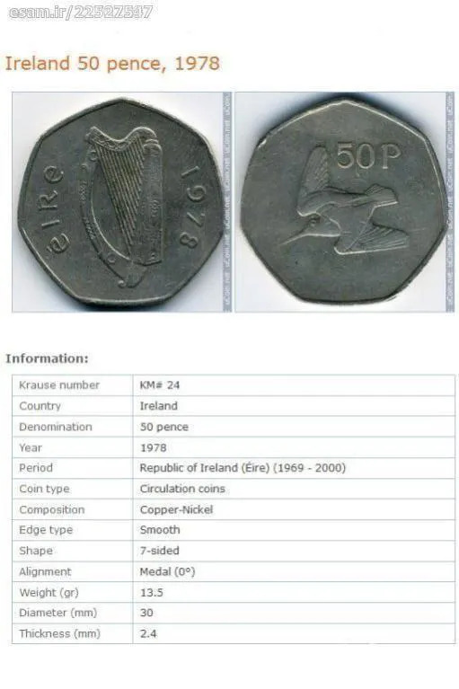 سکه 50 پنی ایرلند 1978 (بسیارکمیاب)