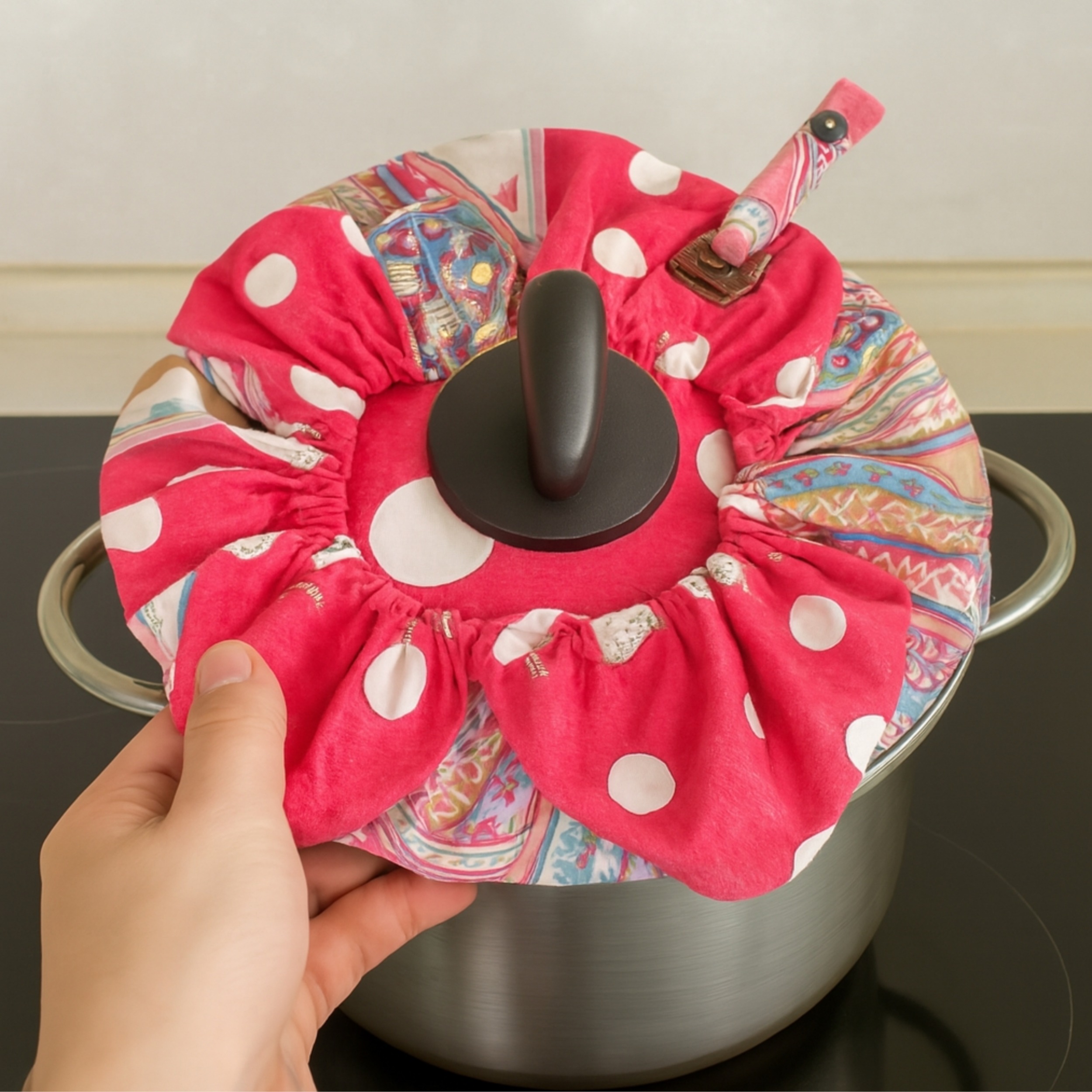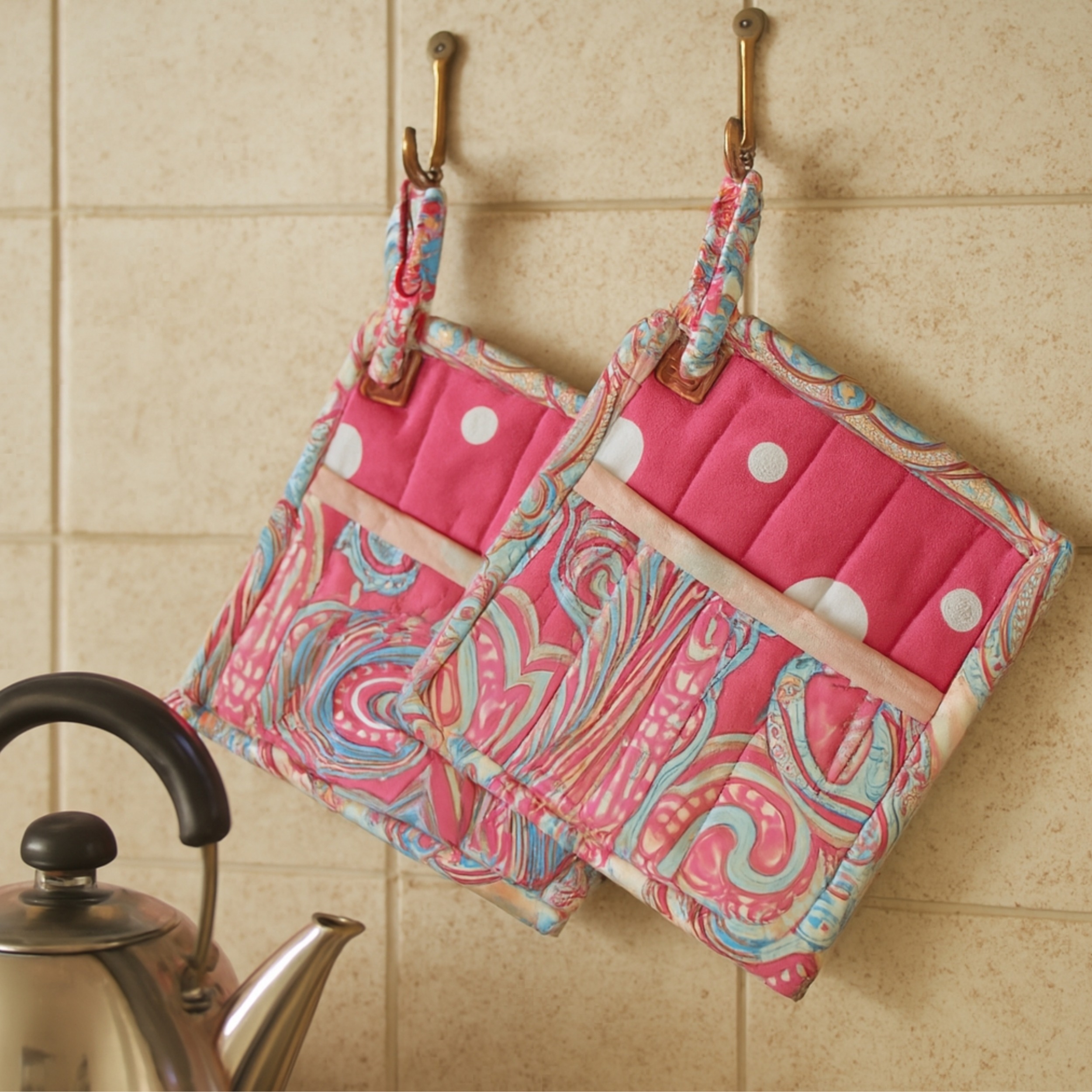 سرویس4تیکه اشپزخانه، شامل یک پیشبند ضد آب ، یک دمکنی فری سایز نخی و دو عدد دستگیره پانچ دار.