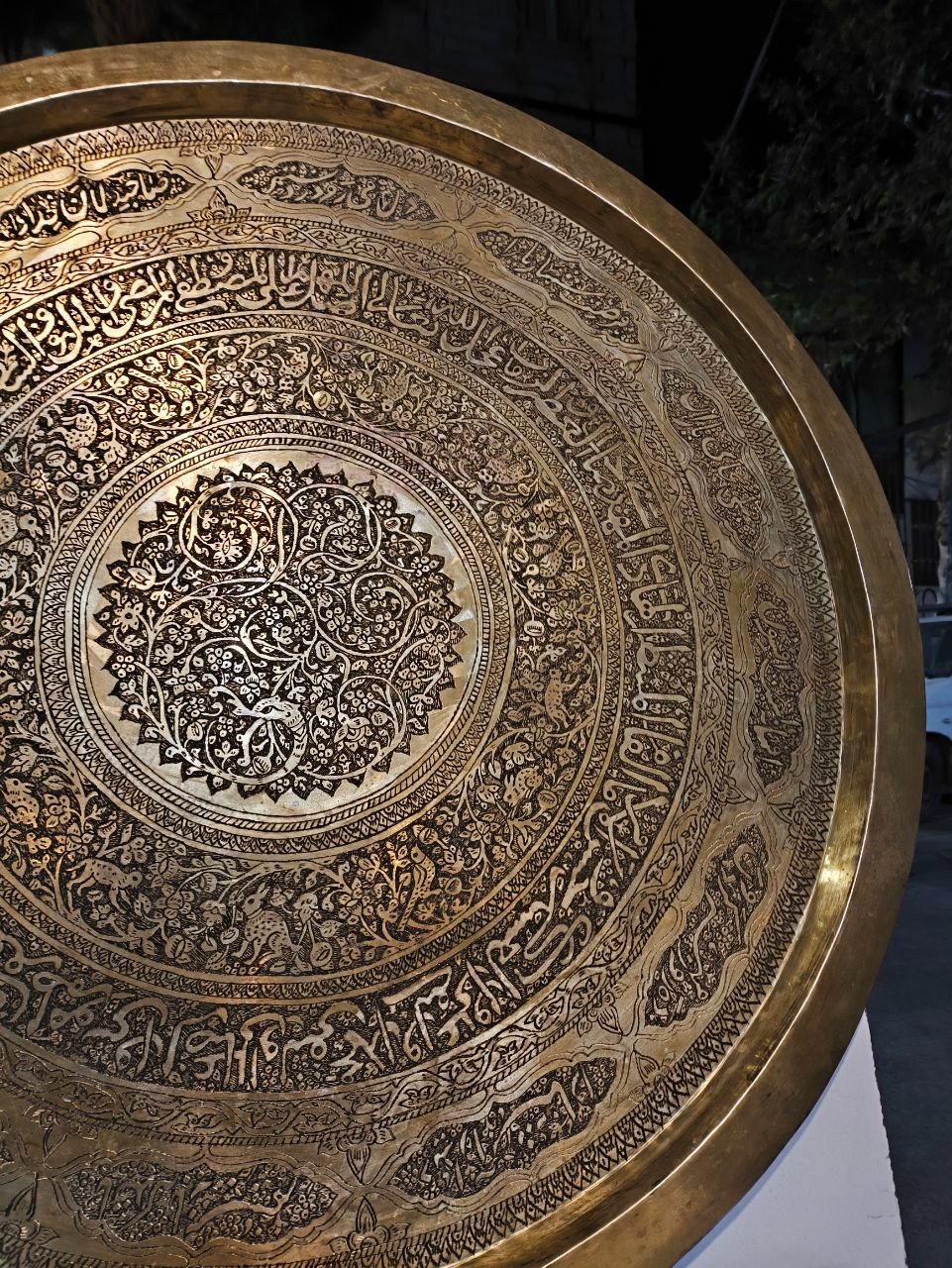 مجمع یا سینی برنجی بزرگ شاهکار قلم زنی