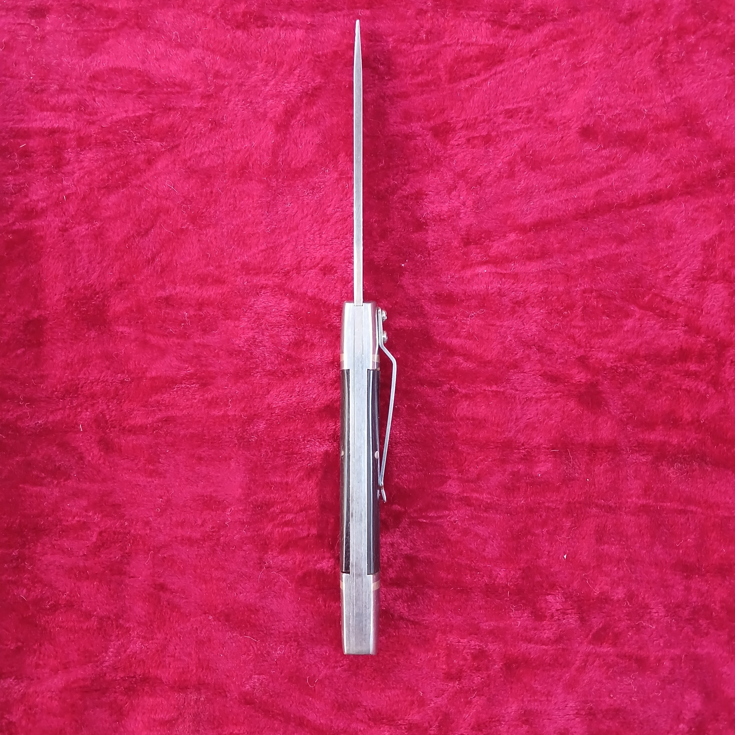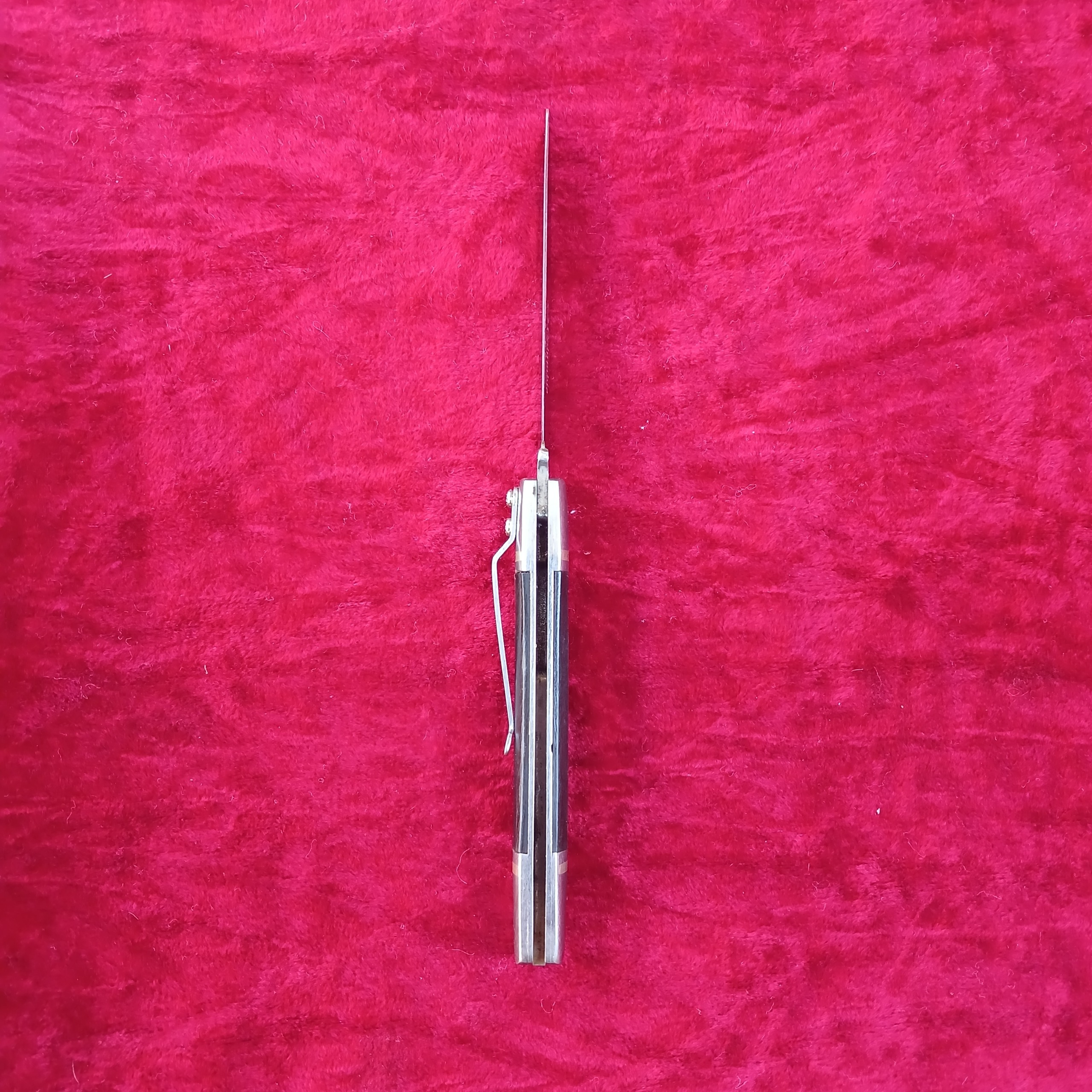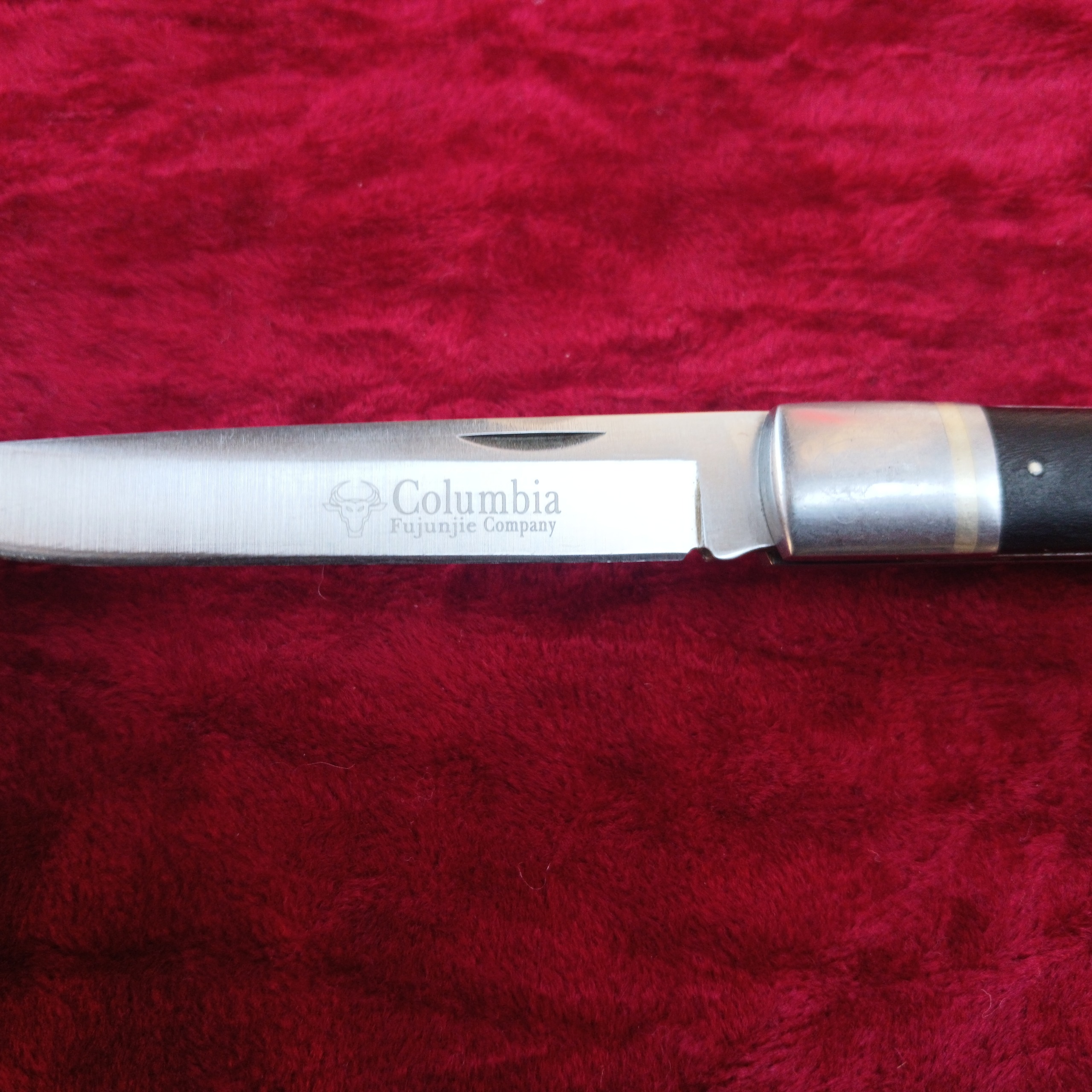 چاقو استیل خارجی سالم و بدون ایراد خیلی تمیز و مرتب مونده بدون ایراد و لقی اندازه طول کلی 17/5 و خود تیغه 8 سانت، با مارک کلمبیا.