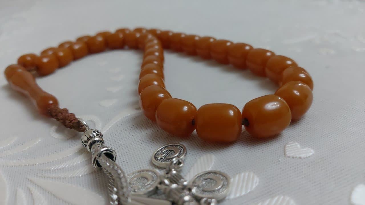 تسبیح کهربای 35 عددی سرتسبیح فلزی