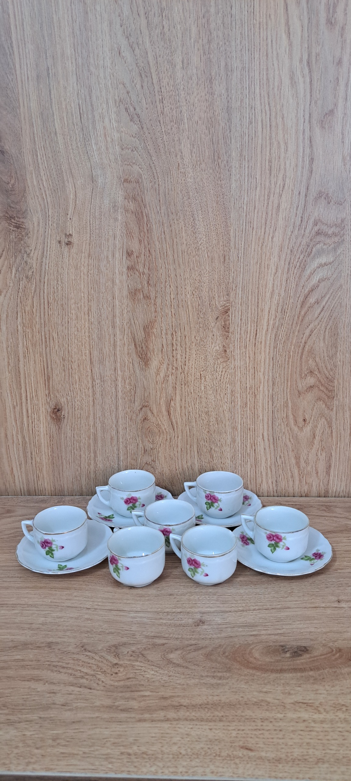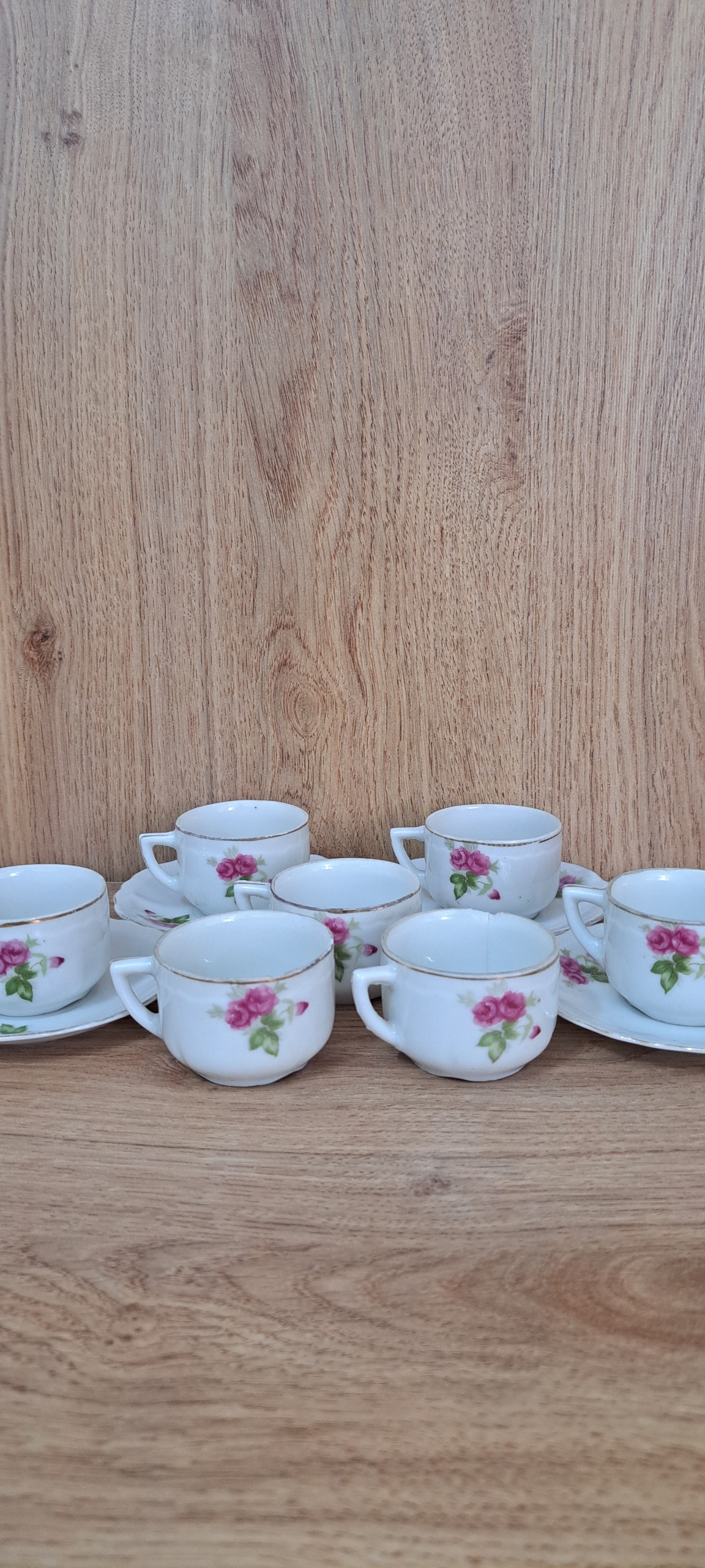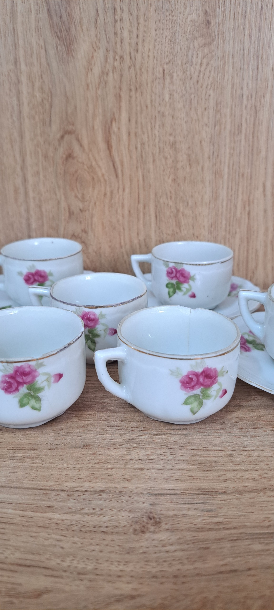 یک دست 4 نعلبکی 7 فنجان موکا خوری دوست کاغذی گل سرخی مارک چین بسیار قدیمی. ،سبک و نازک بهترین جنس