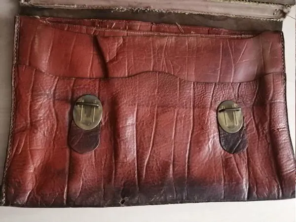 کیف چرم اصل قهوه ای طرح دار قدیمی