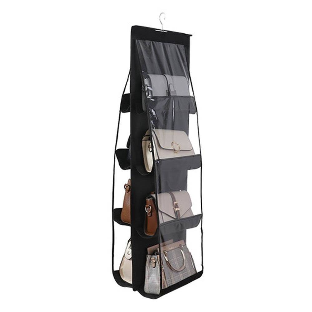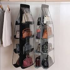 نگهداری از این کیف های دستی کار بسیار دشواری است ، چراکه در ساده ترین حالت به راحتی در زیر دیگر وسایل له می شوند و یا فرم اولیه خود را از دست می دهند . آویز کیف 8 خانه ، به صورت دوطرفه طراحی شده و ظرفیت آن 8 کیف می باشد.در قسمت بالایی نگهدارنده ، یک قلاب فلزی جهت آویزان کردن داخل کمد ، چوب لباسی و حتی پشت درب قرار داده شده تا بتوانید در هر جایی که می خواهید نگهدارنده را آویزان کنید.