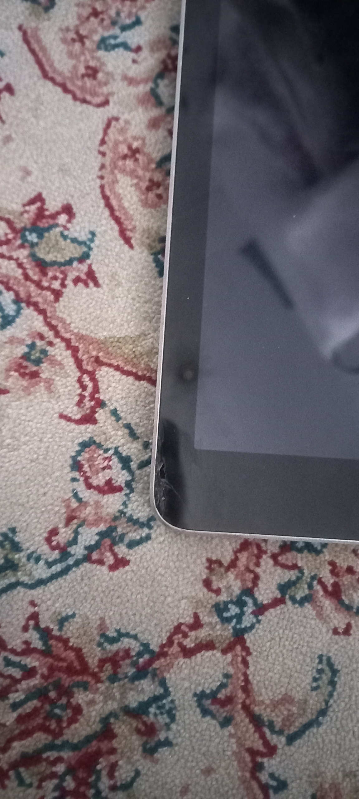 یک تیکه خیلی کوچیک گوشه سمت چپ پایین ترک خورده که هیچ مشکلی ایجاد نکرده و نمیکنه و تاثیری توی کارکردش نداره