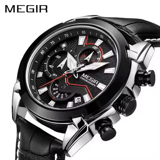 ساعت چرم مردانه سه موتور برند مگیر مدل 2065