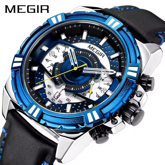 ساعت چرم مردانه سه موتور برند مگیر مدل 2118