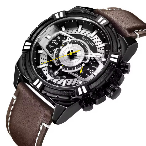 ساعت چرم مردانه سه موتور برند مگیر مدل 2118