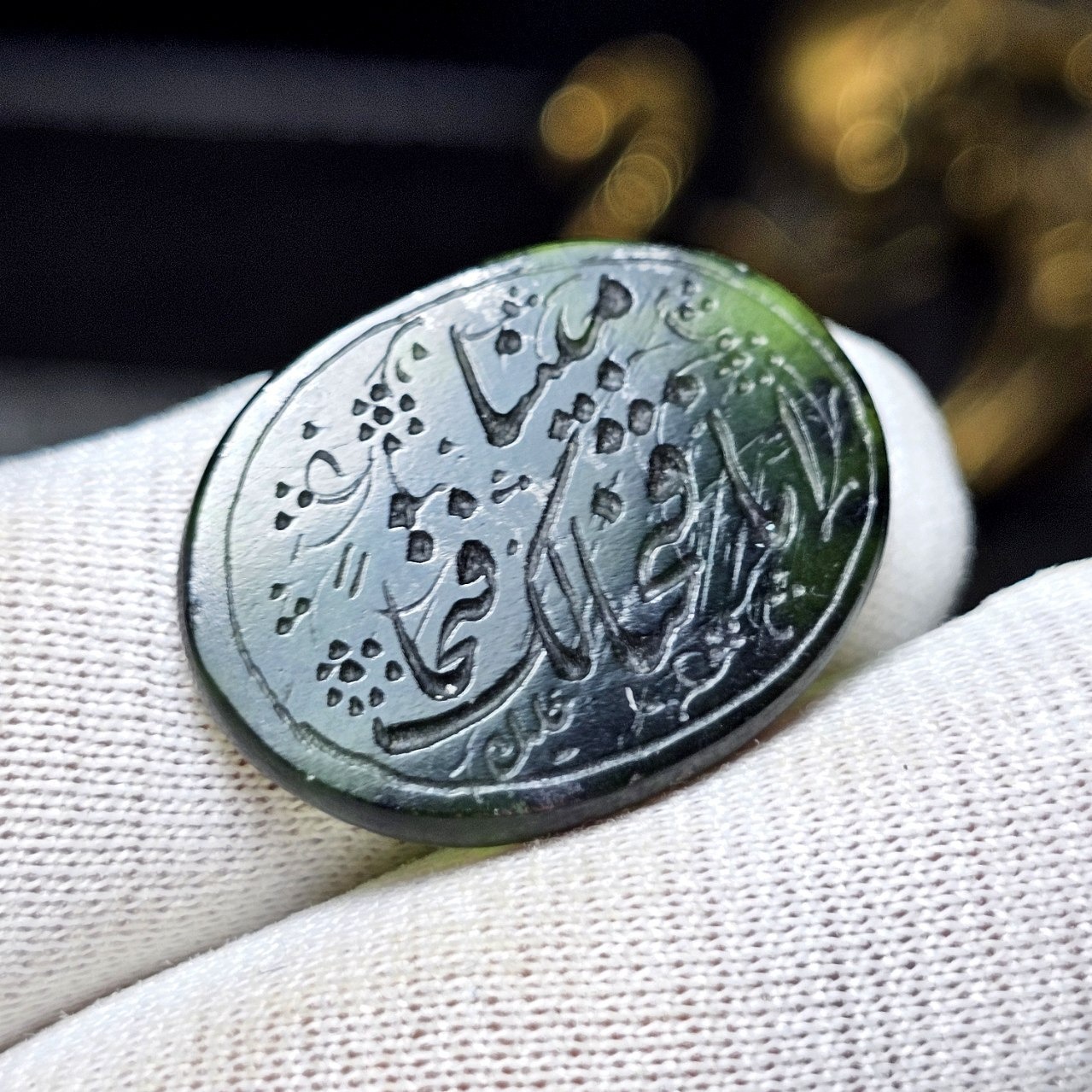 نگین درشت سنگ طبیعی یشم کهنه زغالدار معدنی خط دست کد 36227