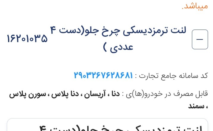 لنت جلو سمند ef7 و دنا اصلی Emco ایساکو